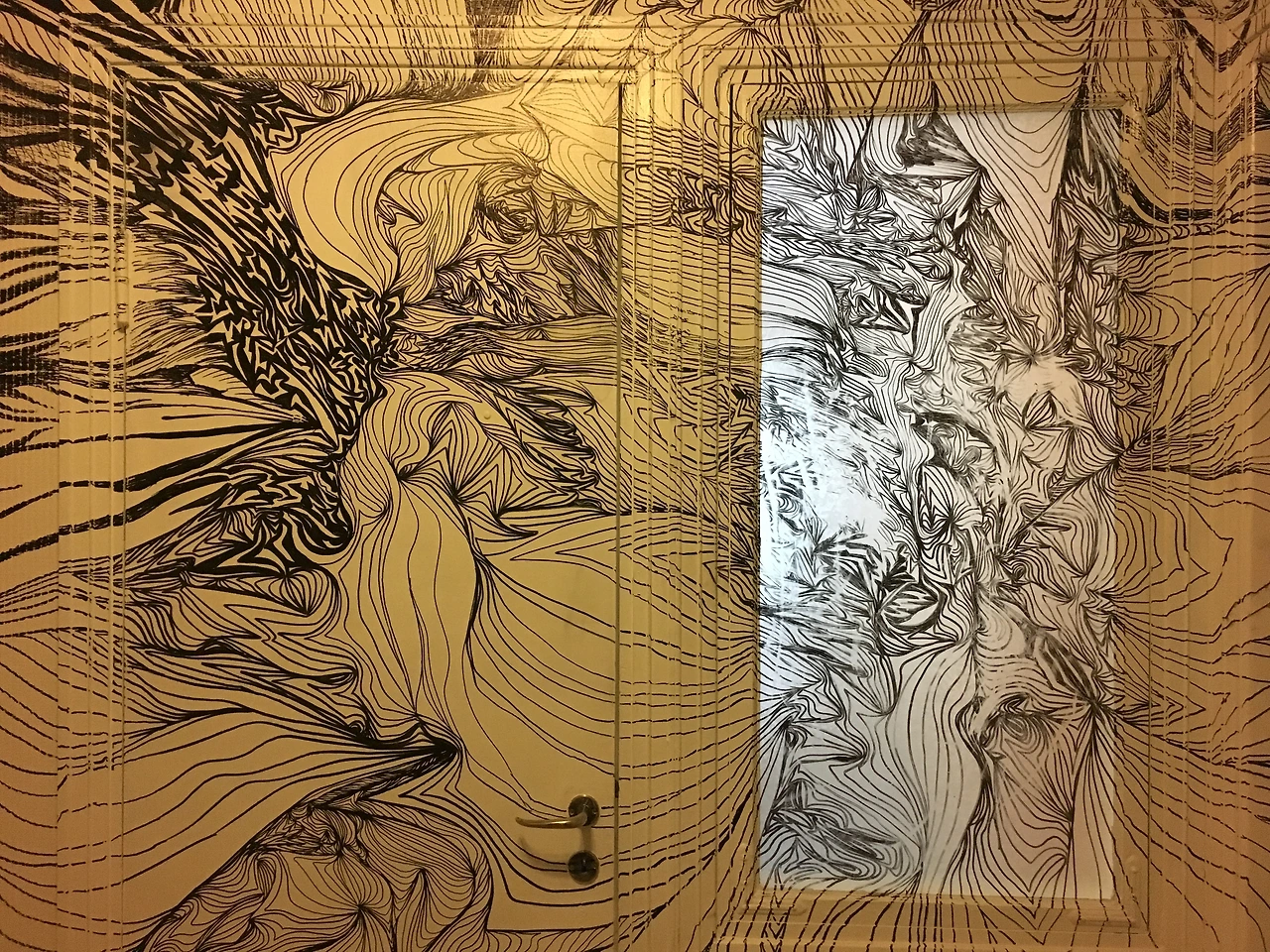 이곳이 재미있는 이유는 이런 공간에 지금까지 이곳을 거쳐간 아티스트들의 손때가 묻어 하나의 예술 공간으로 변화되었고 그 에너지가 곳곳에 남아있다는 거다. 건물에 처음 들어섰을 때 마주하는 기하학적인 드로잉, 내가 묵었던 방 앞 작은 공간에 그려진 거미줄 같은 그림들, 공터에 있는 설치물들이 지금 이곳에 머물고 있는 사람들에게 자유로운 어떤 기운을 전해준다.