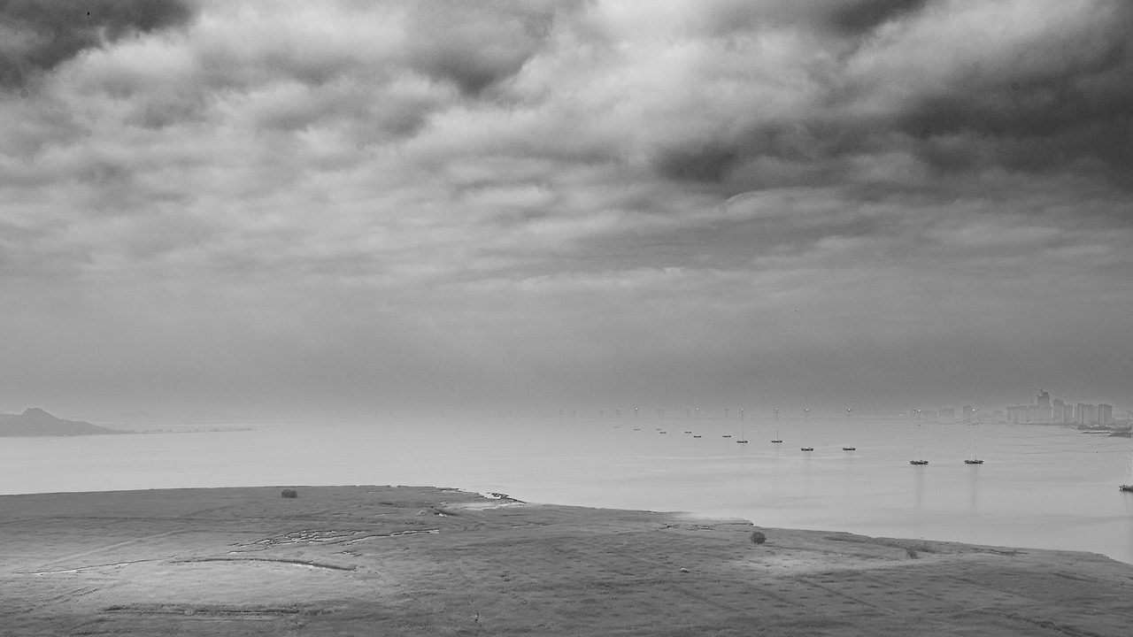 전망대에 올라서면 가장 먼저 마주하는 것은 광활한 침묵입니다. 눈앞에 펼쳐진 시화호의 풍경에서 색을 덜어내니, 비로소 사물의 본질과 그 안에 쌓인 시간의 결이 선명하게 드러납니다. 화려한 도심의 불빛 대신, 이곳에는 낮게 가라앉은 구름과 대지를 묵묵히 지탱하는 송전탑, 그리고 그 사이를 메우는 습한 공기만이 존재합니다.
