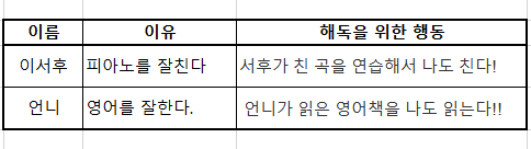 자신보다 영어를 잘하는 언니를 향한 질투심이 한글도 떼기 전에 영어책을 먼저 보게 만들었다. 무슨 글자인지 알지도 못하는 영어책을 듣고 또 들으면서 스스로 파닉스를 터득했고 영어책을 읽기 시작했다. 그리고 지금은 영어로 본인이 하고 싶은 말은 능숙하게 표현할 줄 아는 만큼 영어 실력이 성장했다. 발레를 시작한 것도 순전히 친구를 향한 질투심 때문이었다. 발레복을 입고 다리가 쫙 찢어지는 친구를 보고는 발레에 좀처럼 관심이 없던 아이는 자기도 발레 학원에 보내달라고 했다. 본디 유연성이 부족했던 아이는 발레를 배우고 올 때마다 어렵고 아프다며 울면서 힘들어했지만 결코 포기하지 않았다. 앞으로 얼마만큼 성장할지 기대된다.