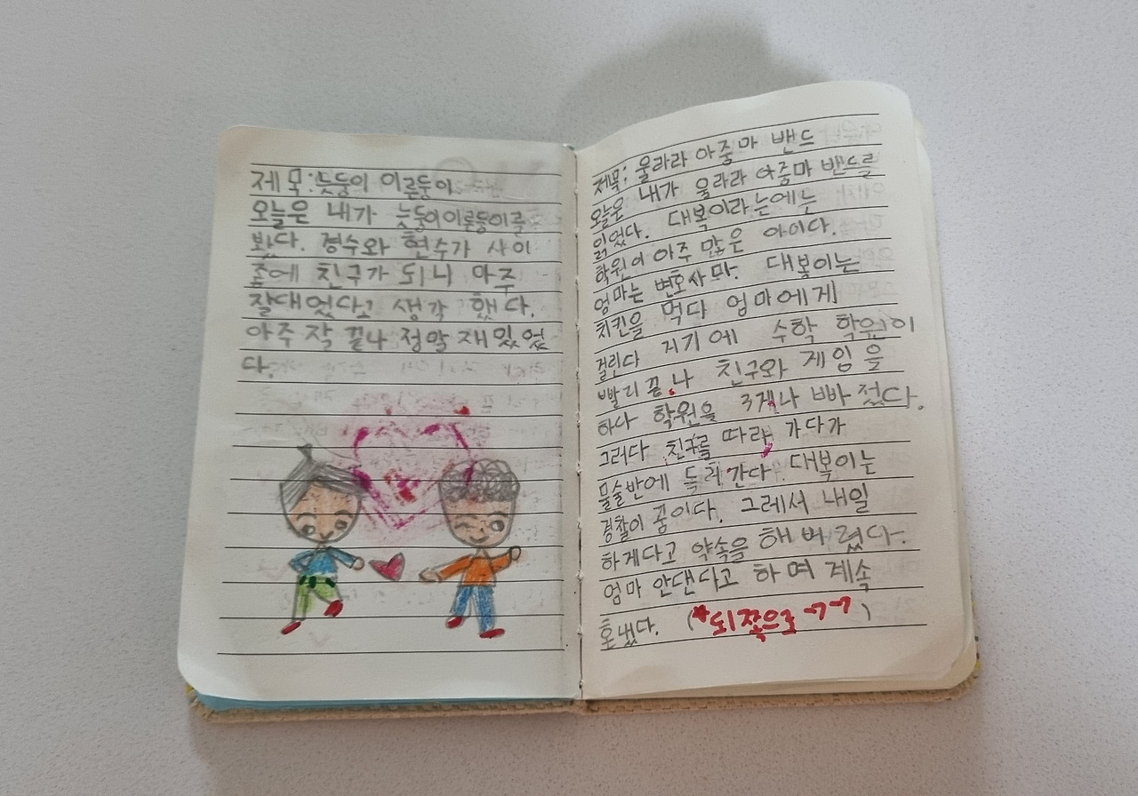 자기가 한 일에 대해서는 반드시 그보다 몇 배의 칭찬을 기대하는 아이의 심리를 알기에 노트를 읽기도 전에 나는 이미 칭찬 폭격을 준비하고 있었다. 그런데 노트를 받아 들고 읽는 순간 굳이 억지 칭찬을 만들어내지 않아도 아이에게 진심으로 감동했다.