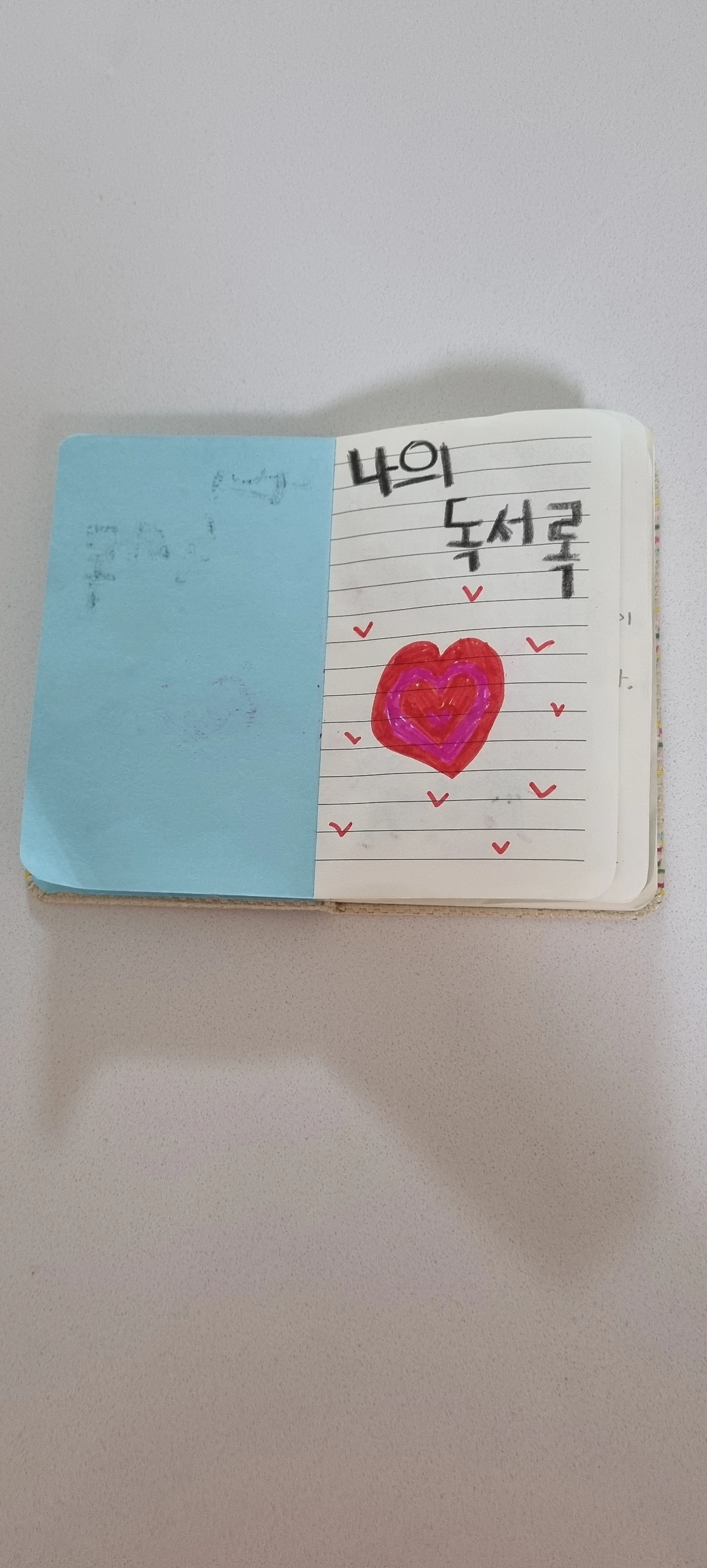 틈이 나면 자연스레 책을 꺼내 자리에 앉아 독서의 세계로 빠져드는 첫째와 다르게 8살 둘째는 책과는 썩 친하지 않다. 그나마 책과 친해지게 해 보려고 도서관에서 다양한 책을 빌려다 읽히고, 나와 제 언니가 수없이 책을 읽어준 덕택에 책과 친해졌다 멀어졌다를 반복하고 있는 아이였다. 그런 아이 입에서 스스로 독서록을 써보겠다고 공책을 산다고 하니 두 손들고 환영할 일이었다.