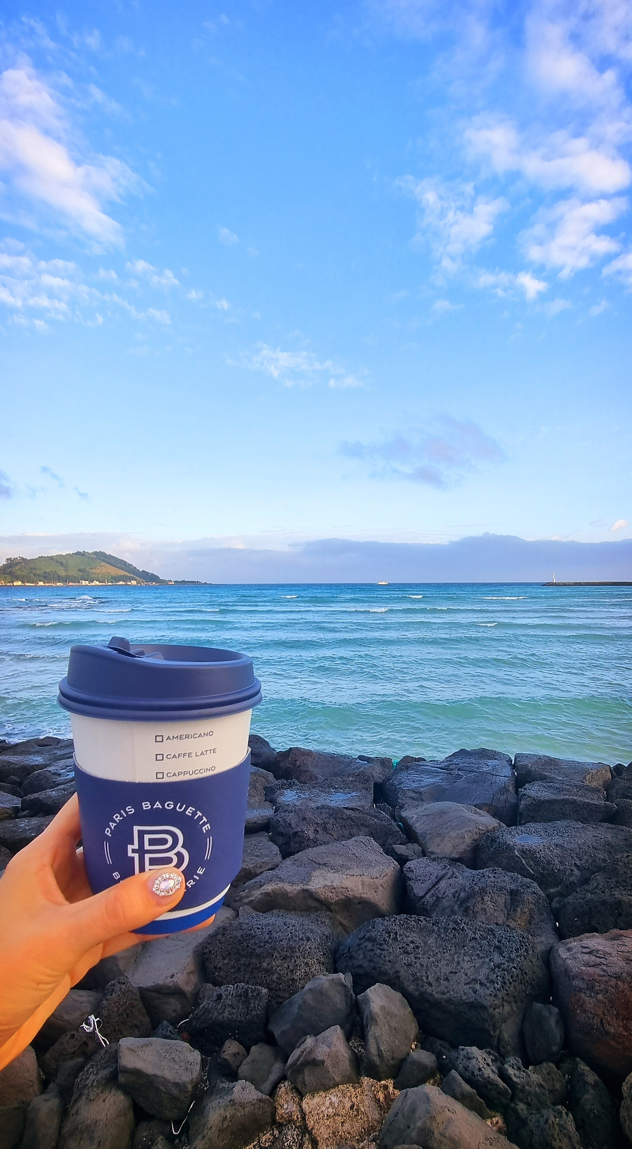여행 첫날부터 양껏 취하고 있지만 새 아침이 밝아오면 또다시 고프다. 바다 내음과 소리를 맘껏 들이키고 싶었다. 이른 시간에 나오면서 일부러 이어폰도 귀에 꽂지 않았다. 한걸음에 바다까지 내달리며 낯선 곳의 향을 킁킁거리고 이내 잡힐듯한 파도 소리에 귀를 한껏 열어본다. 곧 죽어도 모닝커피는 포기할 수 없기에 이른 아침에 열려있는 파리바게트가 반갑다. 따뜻한 아메리카노 한잔이면 족한 이 아침.