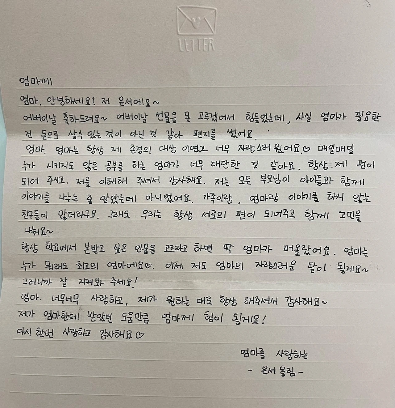 아이가 준 편지