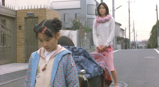 두번째 장면: 츠데오의 옛 여인과 대면하는 장면이다. 이 장면은 사실 개인적으론 베스트 샷 중 하나라 여겨진다. 이웃집 아이가 조제가 탄 유모차를 끌고 가다 옛 여인과 만난다. 이웃집 아이는 유모차를 멈추고 뒤돌아 선다. 뭔가 좀 이상하지 않은가?? 조제의 유모차를 이웃집 아이가 끌고 갔다는 것과 아이가 츠데오의 옛여인을 만나자 뒤돌아 섰다는 사실 말이다. 물론 이 장면에서 츠데오가 끌고 가기엔 이 상황이 나올 수 없고, 이웃집 아이는 순간 겁이 나서 뒤돌아 섰다고 말할 수도 있을 것이다. 하지만 개인적으론 이 장면이 조제의 현재 모습을 상징적으로 나타내주고 있다고 생각한다. 이웃집 아이는 내면의 조제를 상징하는 것이다. 조제는 아직 어린아이. 게다가 츠데오의 옛여인과 당당한 듯 이야기 하지만 사실은 피하고 싶은 조제의 여린 마음을 말이다.