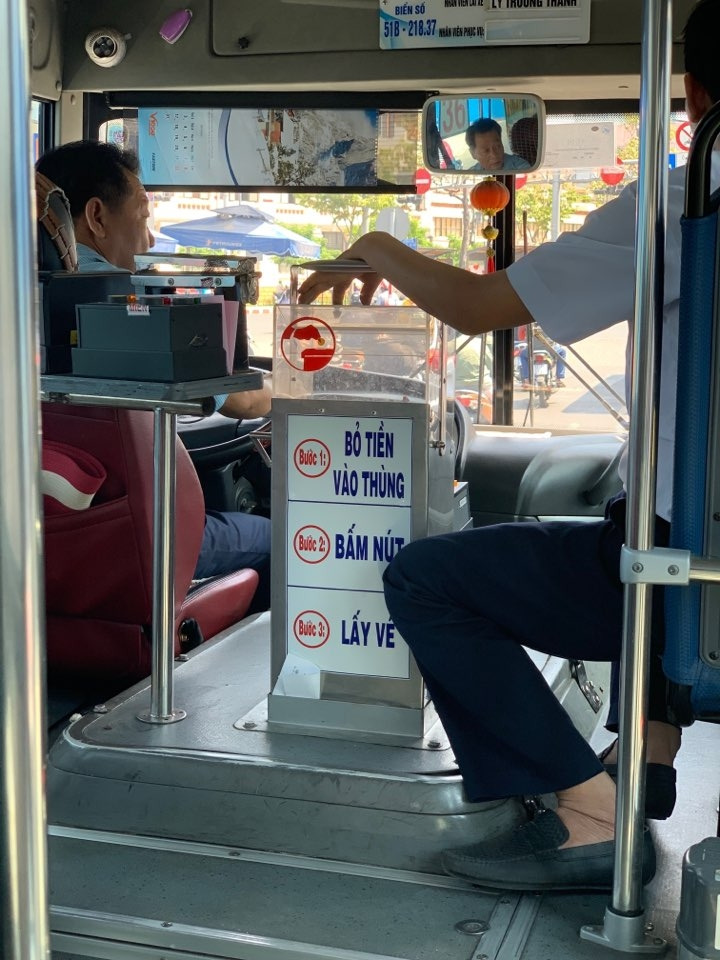 호치민 버스에서는 직원이 버스 요금을 직접 걷으러 다니는 진귀한 광경도 볼 수 있다. 버스를 타보지 않는다면 이런 흔치 않은 장면을 놓칠 수밖에 없다. 수금하는 직원에게 요금을 건네면 직원이 영수증을 주는데, 요금을 먼저 확인하고 싶다면 영수증을 먼저 받고 거기에 쓰여있는 금액을 줘도 된다.