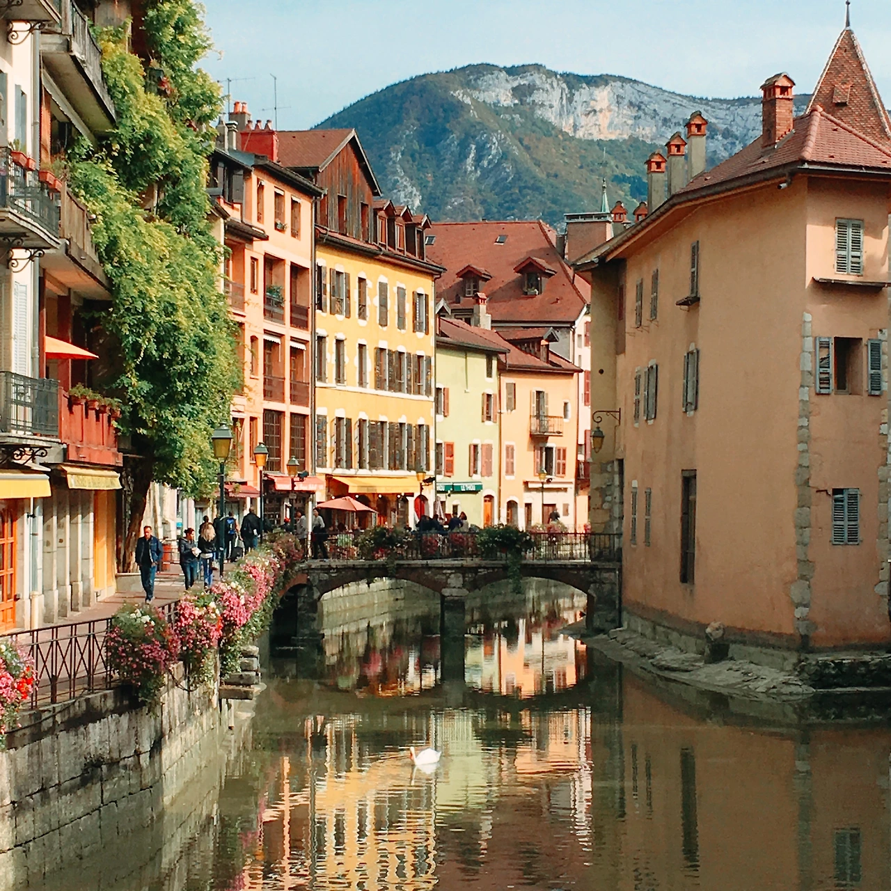 젤라또 하나를 사서 천천히 구시가지를 걷다 보니 동화 속에나 나올법한 아기자기한 풍경이 곳곳에서 펼쳐졌다. 마을은 안시 호수로 연결되는 작은 운하를 품고 있어 사뭇 이탈리아의 베네치아가 연상되기도 했다. 파스텔 톤 집들로 둘러싸인 물길 위에 백조가 유유히 헤엄치고, 그 뒤로 커다란 산이 드러난 모습은 그야말로 그림이었다. 이런 장관을 보고 있자면 엽서에 나오는 사진이 실재하긴 하는구나 생각이 든다.