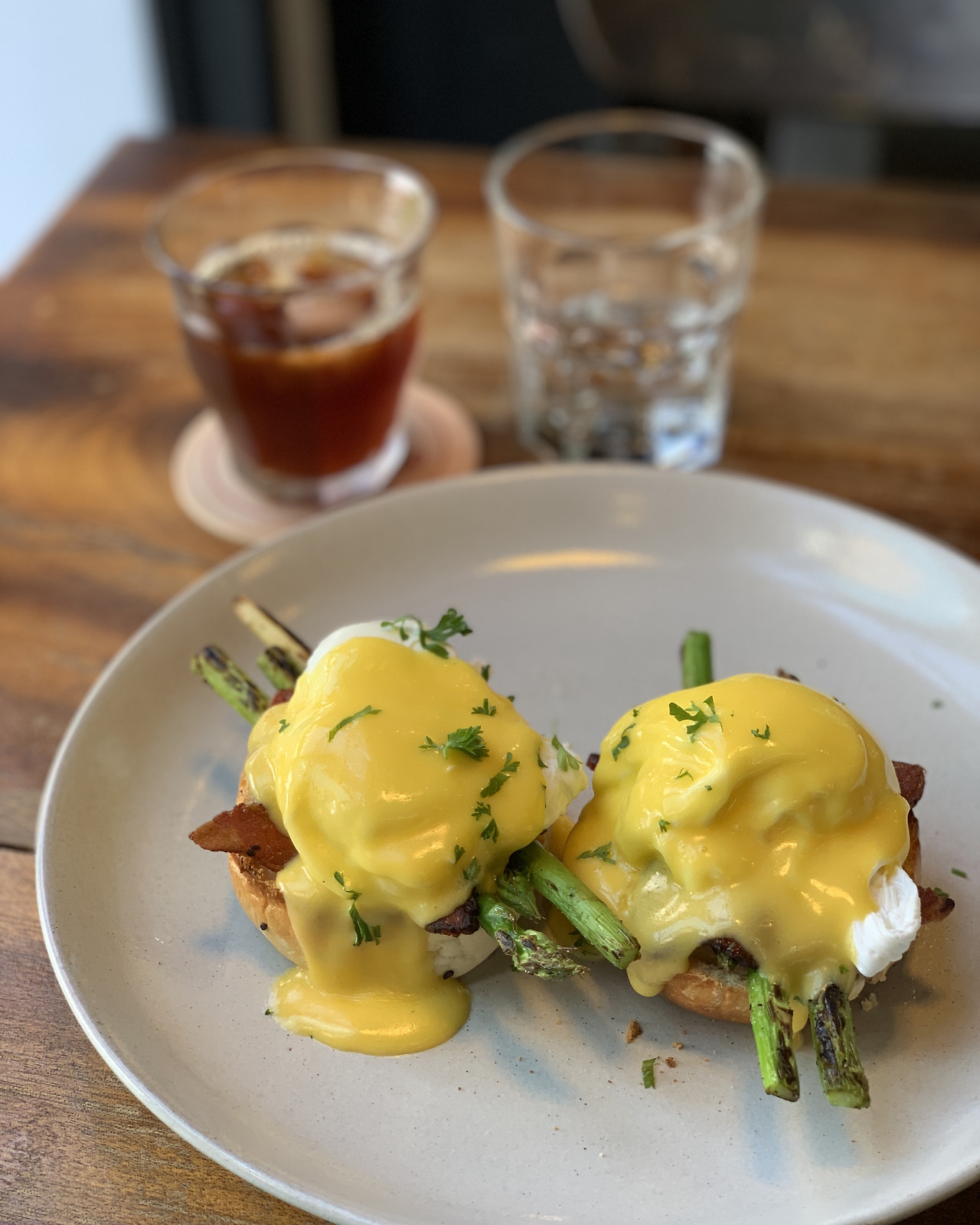 이 곳은 커피뿐 아니라 브런치나 간단히 먹을 수 있는 식사 메뉴가 있어, 일하면서 식사하기도 좋다. 커피는 드립 커피 전문인데, 메뉴판에 다양한 브루잉 방식을 설명하는 내용이 있고, 원하는 원두와 브루잉 방식을 선택해서 마실 수 있다. 메뉴판도 그렇고 직원들도 모두 프로페셔널한 느낌이다. 나는 드립 커피 한 잔과 에그 베네딕트 하나를 주문했다. 가격은 한국 물가와 거의 맞먹는 수준이라 결코 저렴하지는 않다. 하지만 그에 보상할 만한 맛과 퀄리티를 보장한다. (드립 커피도 그렇지만, 에그 베네딕트 정말 맛있었다)