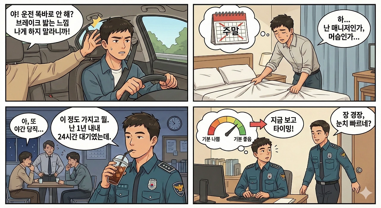 갓 들어온 신임 순경들이 가장 힘들어하는 것이 바로 이 조직 문화와 야간 근무다.