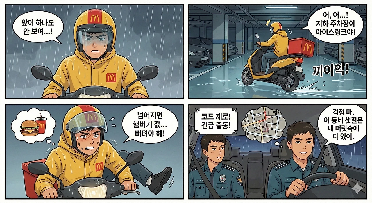 배달 음식이 식기 전에 도착해야 했던 그 절박함은, 이제 '피해자가 다치기 전에 도착해야 한다'는 사명감이 되었다.