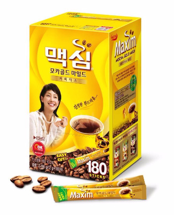 맥심 커피스틱 하나를 종이컵에 따르고 뜨거운 물을 부어준다.