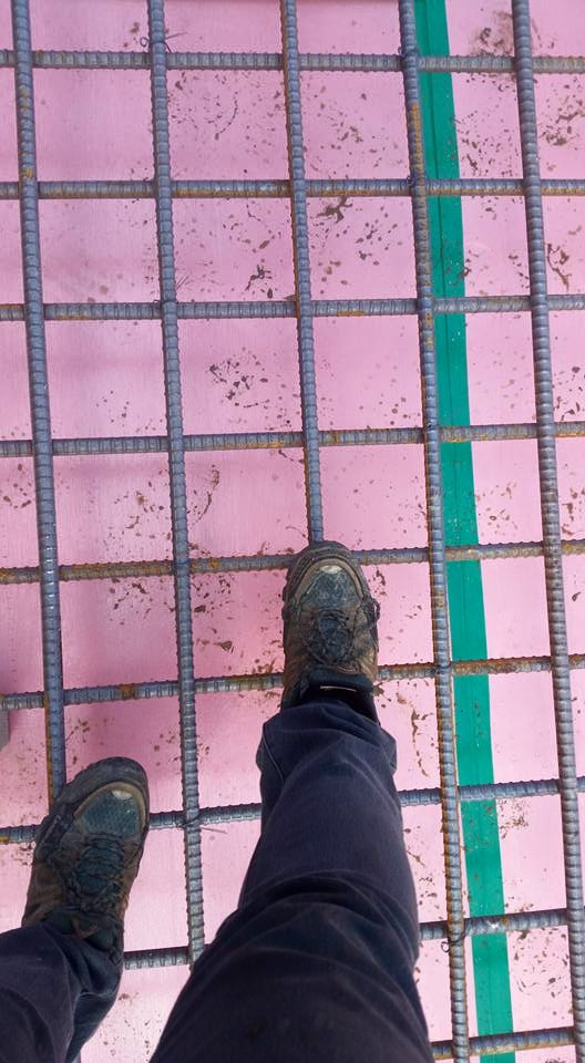 다음은 테이프로 아이소핑크를 잡아준 후 철근을 배근하기 시작한다.