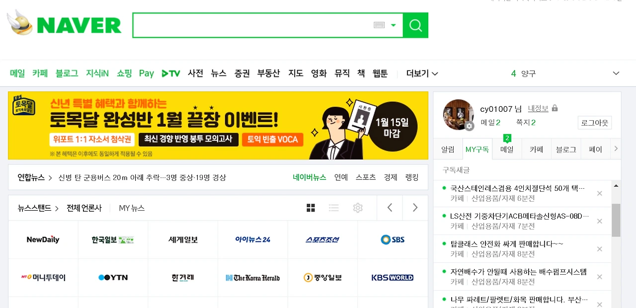 네이버에는 원하는 카테고리나 키워드를 설정해 놓으면