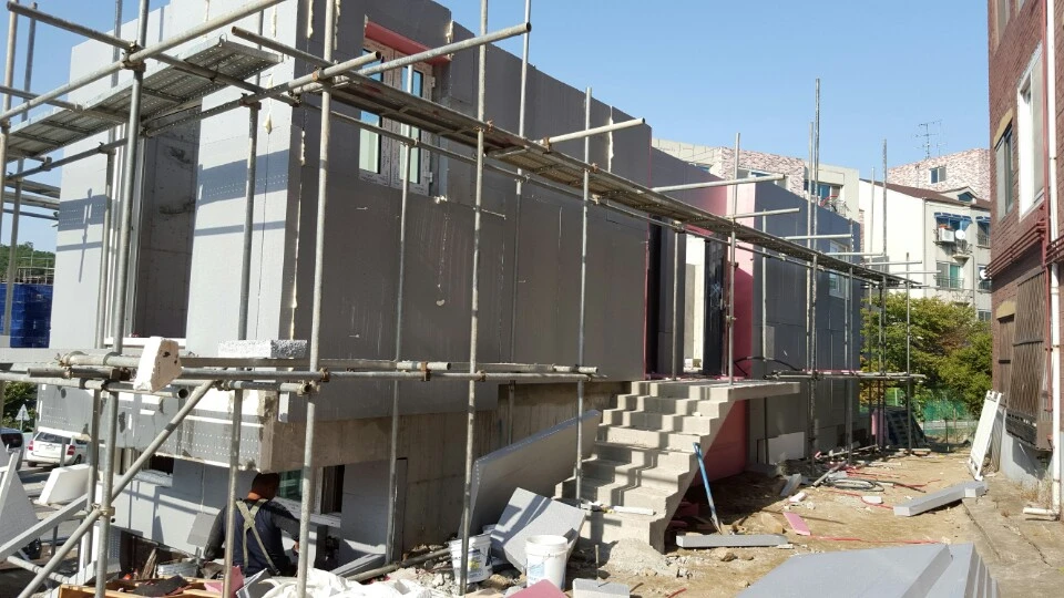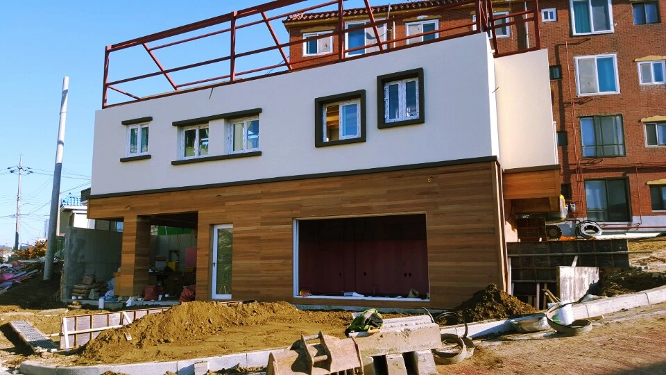 나는 가성비가 가장 높은 공법인, 드라이비트 공법을 적용하기로 했다.