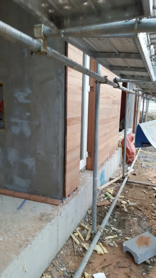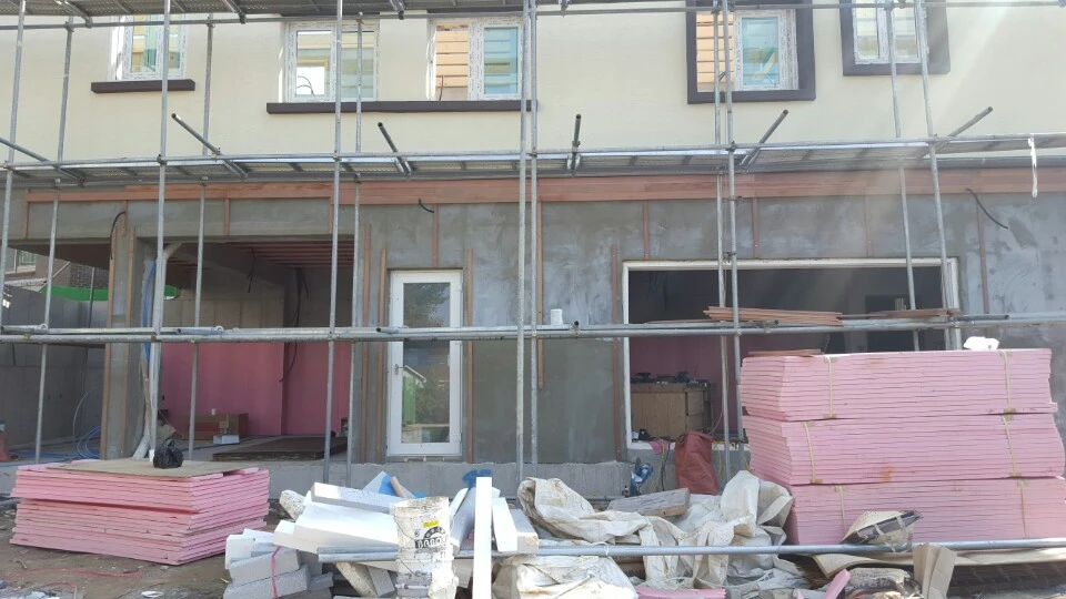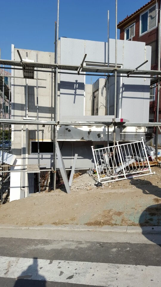 단열효과를 위해서, 1층도 스티로폼과 메쉬로 휘감았다.