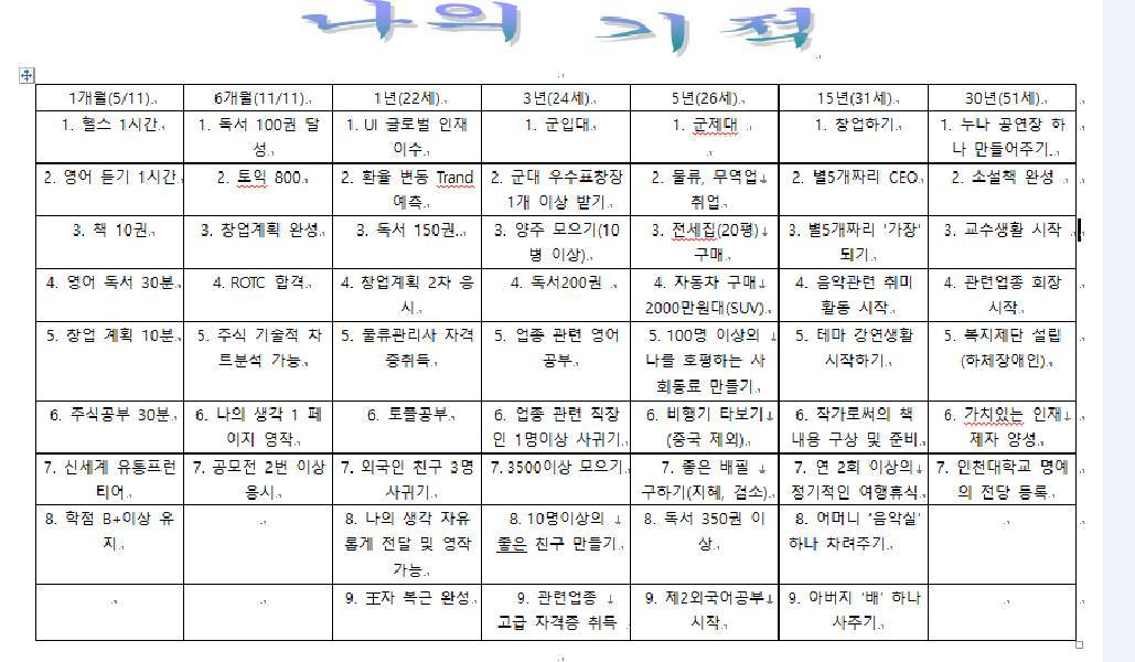 21살에 '나의 기적'이라는 계획표를 세웠다.