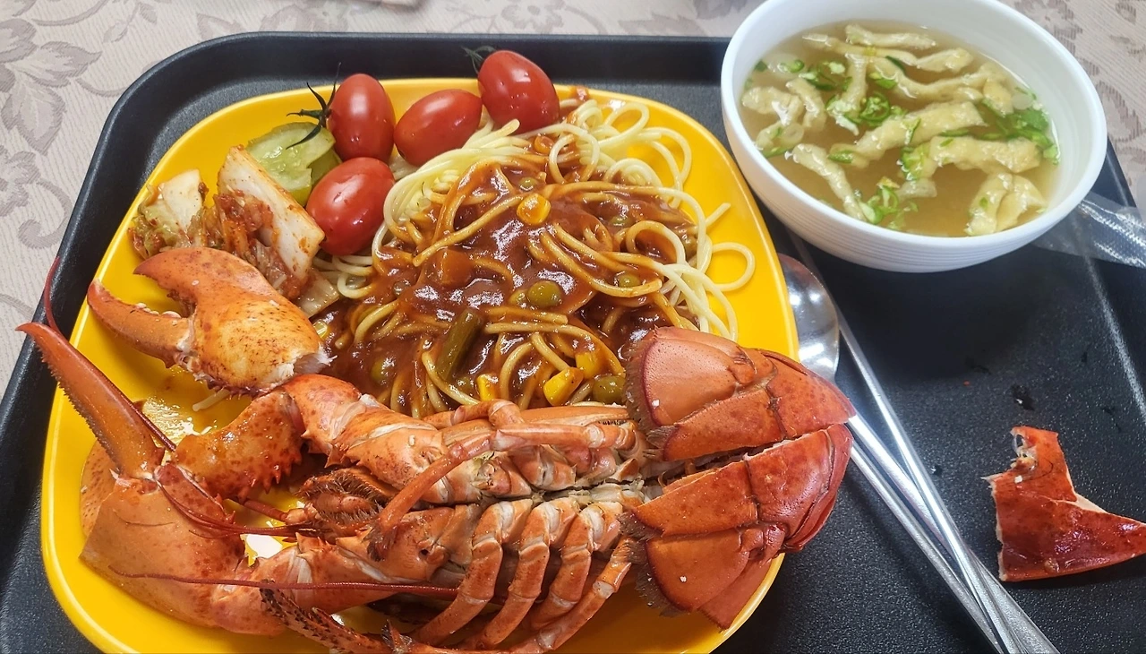 점심 특식으로 랍스터 한 마리씩이 나왔다.