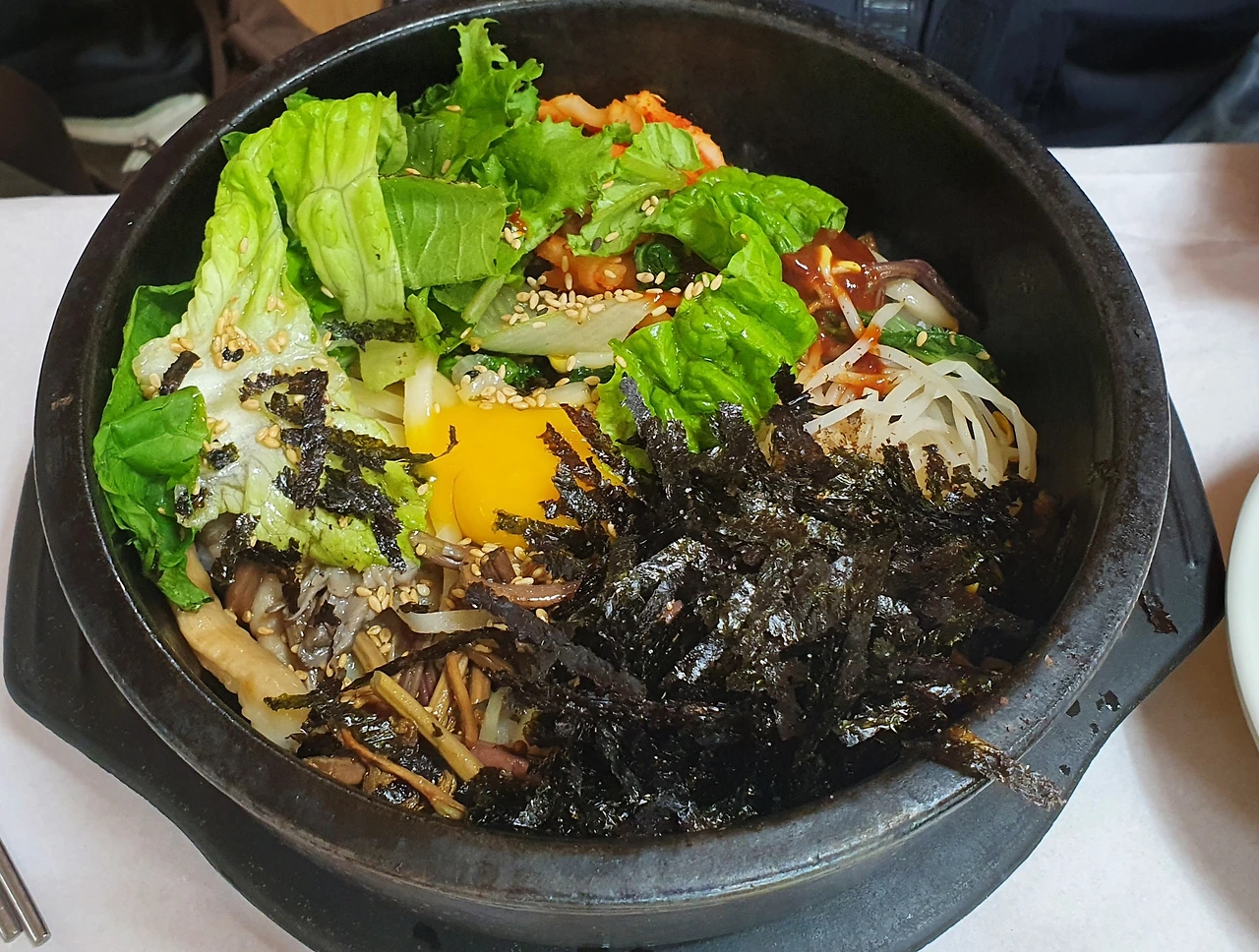 오른쪽으로 비비고 왼쪽으로 비비고를 반복해서 비빈 돌솥밥, 엄마 먼저 드리고, 내 것도 오른쪽 왼쪽 퀵퀵 슬로 슬로 비빈다. 모처럼 엄마와의 데이트다.