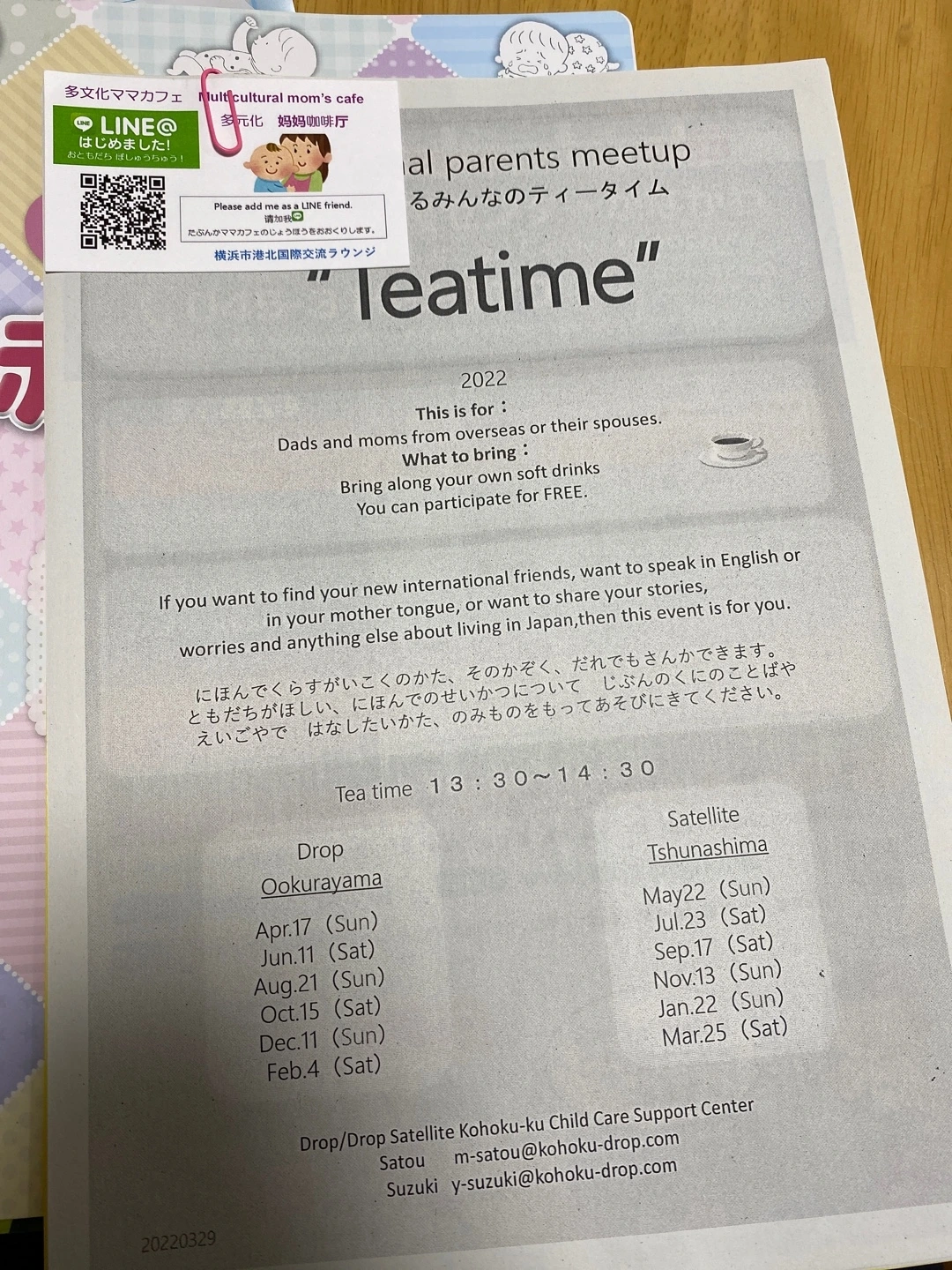두 번의 방문에 대한 인상은 전반적으로 소소하고 세세하다는 것이었다. 뭔가 대단히 챙겨주는 것 같지도 않지만 뜯어보면 은근 세심한 배려가 담겨있는, 딱 일본스러운 느낌. 특히 내가 외국인이고 코로나 시국에 가족들이 일본으로 와줄 수도 없어서 육아를 도와주거나 상담할 상대가 없다는 점을 담당자는 매우 걱정했고, 그에 맞춰 정보와 내가 누릴 수 있는 혜택을 안내해줬다. 지역 이벤트엔 자기도 참석하니 꼭 와달라는 말도 덧붙이며. 나로서는 해외에서 덩그러니 혼자 육아를 하는 고군분투를 이해해주는 것만으로도 감사할 따름이었다. 담당자의 권유를 받았으니 다음 달엔 지역 이벤트라도 나가볼까, 겁쟁이 초보 엄마는 용기를 내본다.