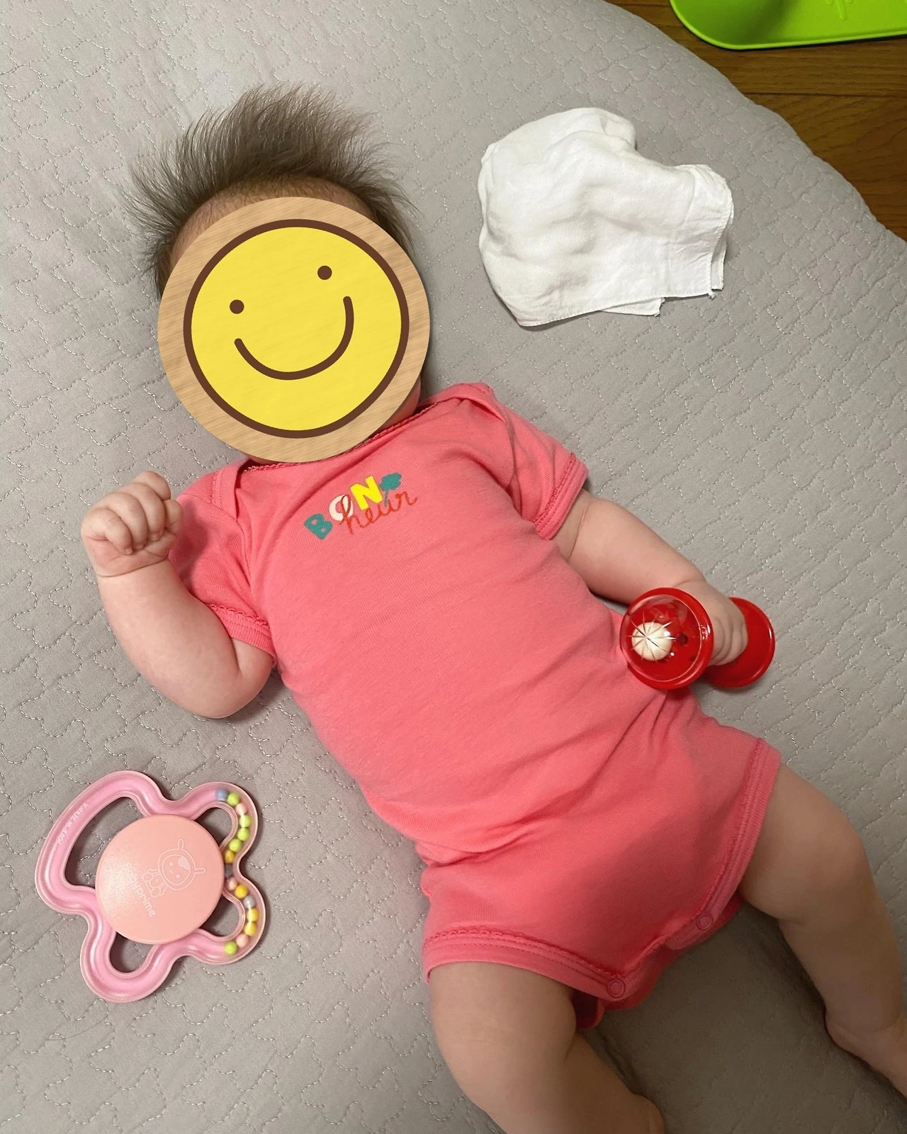 곤니찌와 아까쨩 방문에서는 아이 없이 나만 현관에서 이야기를 나눴는데, 이때 요코하마시에서는 선물로 아기 장난감을 준다. 그냥 심플한 빨간 딸랑이라 솔직히 처음 받았을 땐 속으로 ‘도쿄는 아기용품 살 수 있는 10만 엔 포인트 준다던데…’ 했는데, 기묘하게도 아이가 좋아해서 요즘 아이가 가장 잘 갖고 노는 장난감이 되었다.