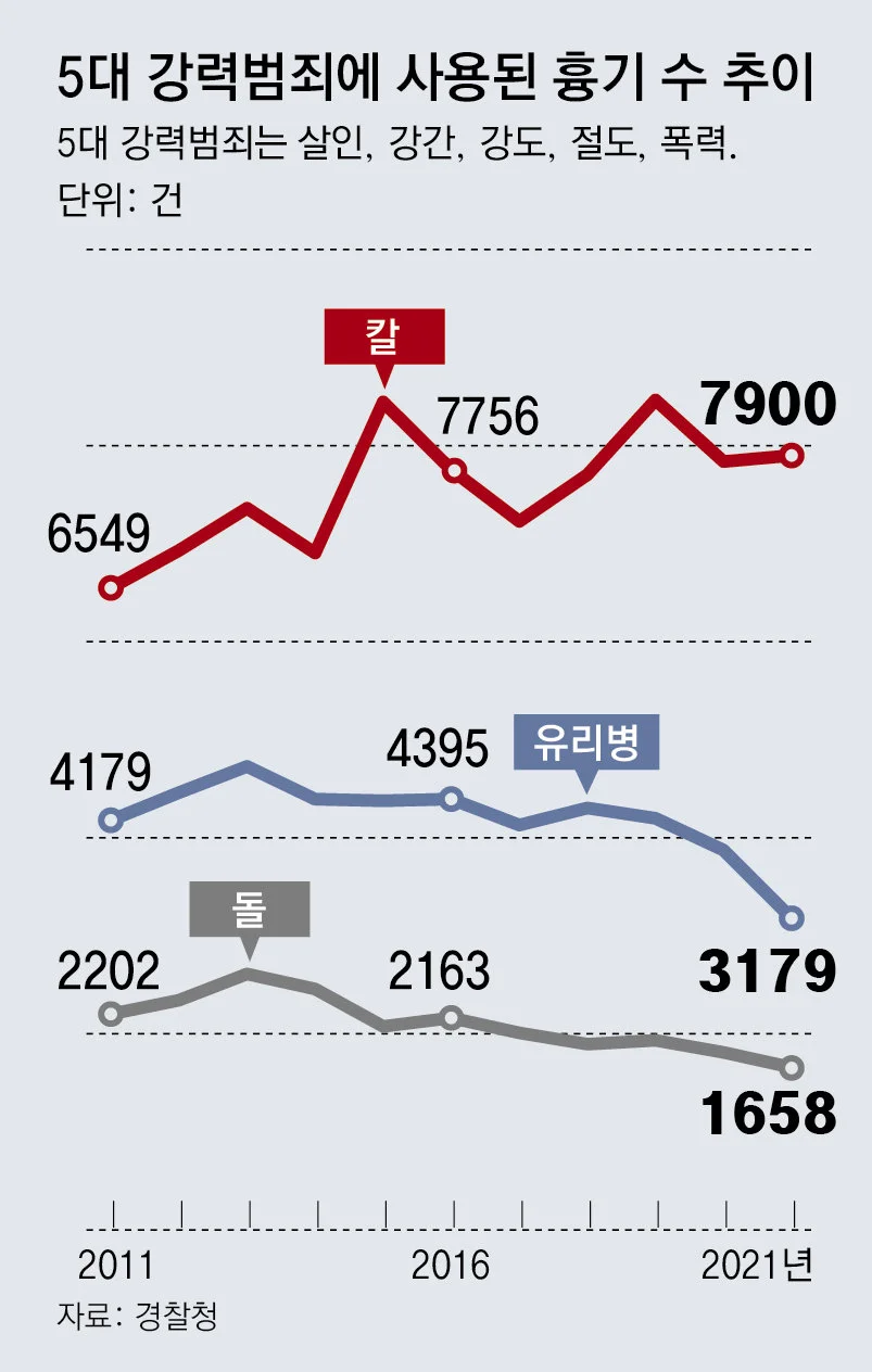 칼부림 강력범죄 10년새 1351건 증가… “계획범행 늘었다”