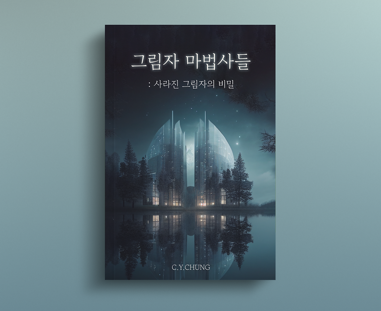 하단의 이미지가 바로 DALL·E 2를 활용해 만든 <그림자 마법사들: 사라진 그림자의 비밀> 최초의 표지 이미지입니다. 지금 봐도 나쁘지는 않지만, 제가 추구했던 [현대적이고 세련된, 그러나 어두운] 감성의 표지보다는 좀 더 동화책 같은 느낌이 되어서 아쉬웠던 것 같습니다.