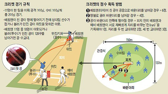 크리켓 경기 규칙 및 경기장 현황 (출처 : 스포츠조선)