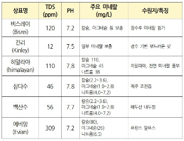 Q1. 생수에 들어가는 미네랄의 종류는 어떤 것들인가요?