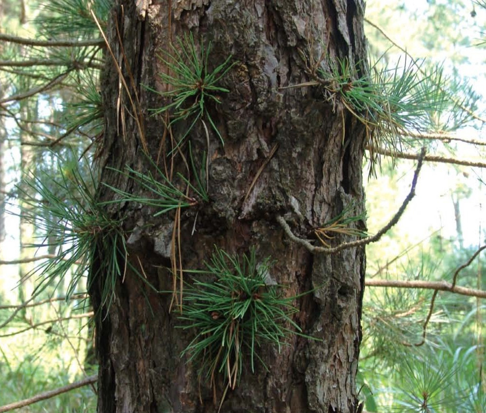 차이는 또 있다. 대부분 식물은 생존이 힘들면 꽃이 만발해 많은 종자를 만든다. 종족 번식이 곧 위기관리 능력이다. 리기다소나무도 극단적 생존방식을 장착했는데 줄기 중간에 나와 있는 새싹을 보면 알 수 있다. 즉, 영양이 부족하면 윗부분을 스스로 죽인다. 그 아래쪽 새싹에서 새 가지를 만들고 생명을 잇겠다는 처절한 의지의 표현이다. 또한 씨가 담긴 솔방울을 많이 만들어 다음 세대를 퍼뜨릴 준비를 한다.