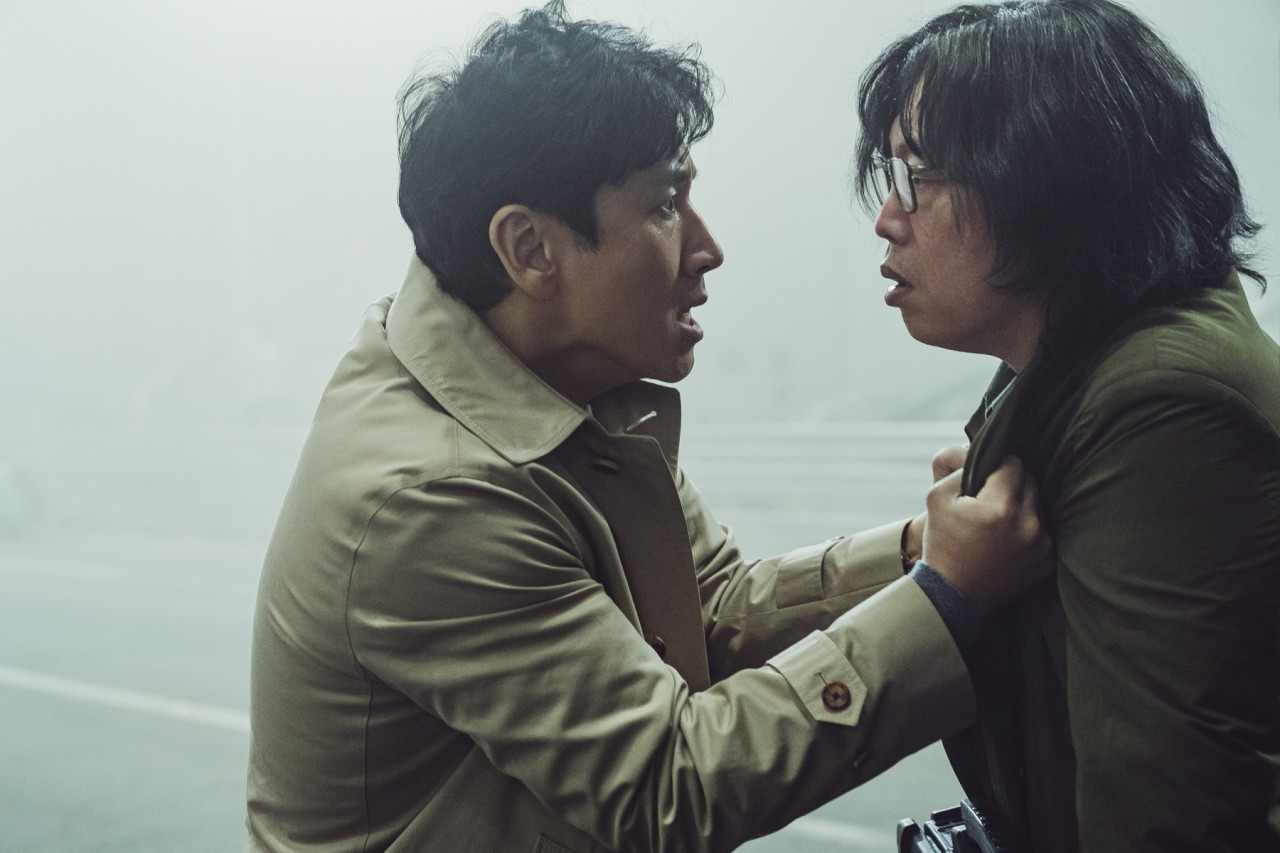 故 이선균 배우의 마지막 세 얼굴은 포개진다. 첫 번째는 〈탈출: 프로젝트 사일런스〉(2024)다. 청와대 안보실 행정관 차정원으로 분한 그는 재난을 마주한 국민에게 국가란 무엇인가를 질문한다. 오히려 처음에는 정반대였다. 유력한 차기 대통령을 상관으로 둔 차정원은 모든 일을 정략적으로 처리하는 데 능숙한 인물이다. 어떠한 선택에 담긴 공적 의미가 아닌 그 선택이 표와 이미지 메이킹에 도움이 되는지만 기계적으로 판단한다. 그러나 상관이 연루된 극비 프로젝트 때문에 되레 자신과 딸의 안전을 위협받고, 끝내 상관에게 버림받은 후 기존 가치관을 버리고 ‘생존자’로서 목소리를 낸다. 이때의 차정원은 웃는 얼굴이다.