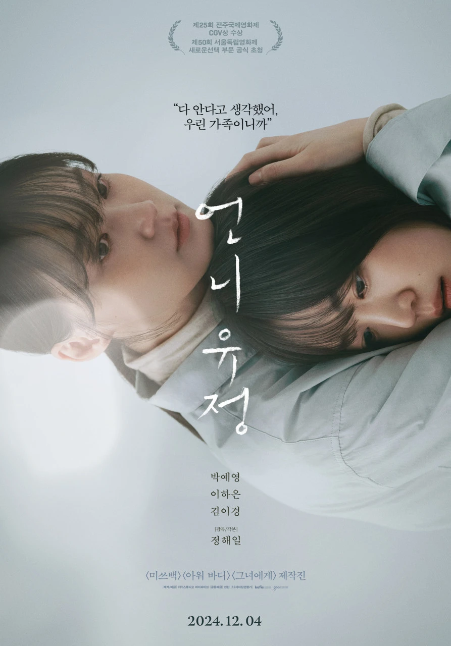 혈연은 가족 관계를 구성하는 절대적인 근거로 간주된다. 하지만 서로를 돌보고 북돋는 가족의 절대적 근거일 순 없다. 가족은 명사가 아닌 동사다. 관계 호칭에 걸맞은 육체적‧정신적‧감정적 실천이 동반되어야만 한다. 이것이 유정이 마주한 과제다. 이제 유정은 동생과의 관계를 처음부터 새로 만들어가야 한다. 이전에 알던 기정은 없다. 〈언니 유정〉은 당연하게 주어진 혈연 관계를 넘어 유정이 진정한 의미의 언니가 ‘되어가는’ 과정을 담는다.