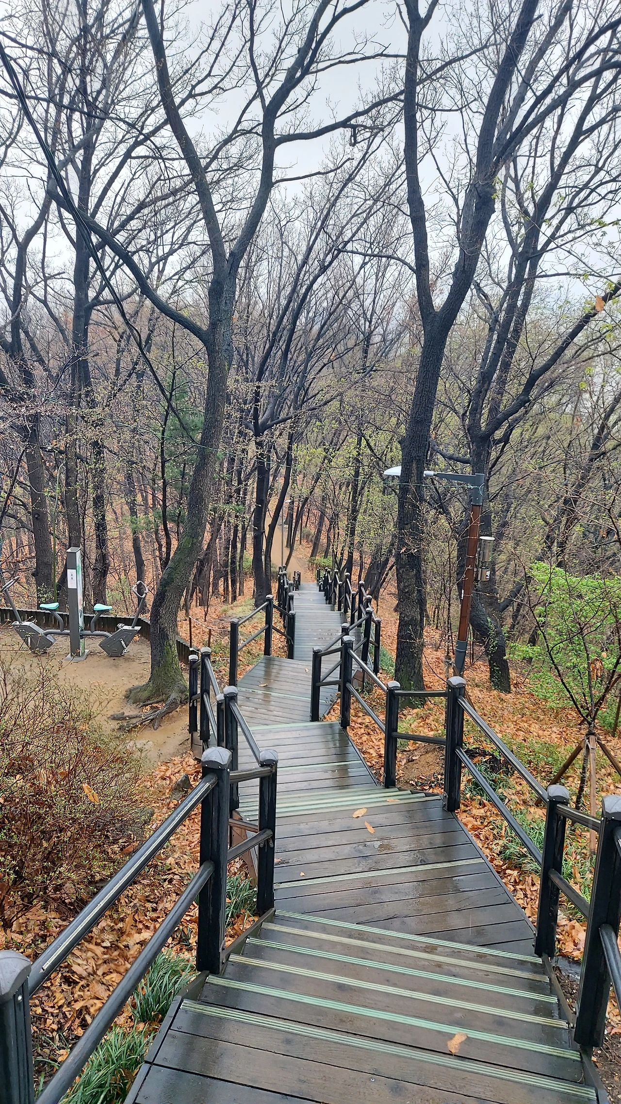 매봉산은 개인적으로 집에서 가깝기도 하고, 경사가 별로 없어 비오는 날에 산책하는 곳으로 꼽아두고 있다. 비가 올 때 산책을 하려면 우선 미끄러지지 않도록 경사가 적으면서, 신발이 많이 젖지 않게 멍석이 깔린 것 같은 시설이 잘 갖추어진 곳이 좋다. 신발이 다 젖어 축축해지면 여유있게 산책하기 보다 얼른 마치고 돌아가고 싶어지게 된다. 빗속의 풍경을 여유있게 감상하러 산책을 나온 것인데 마음이 조급해서는 소확행을 얻기 어렵다.