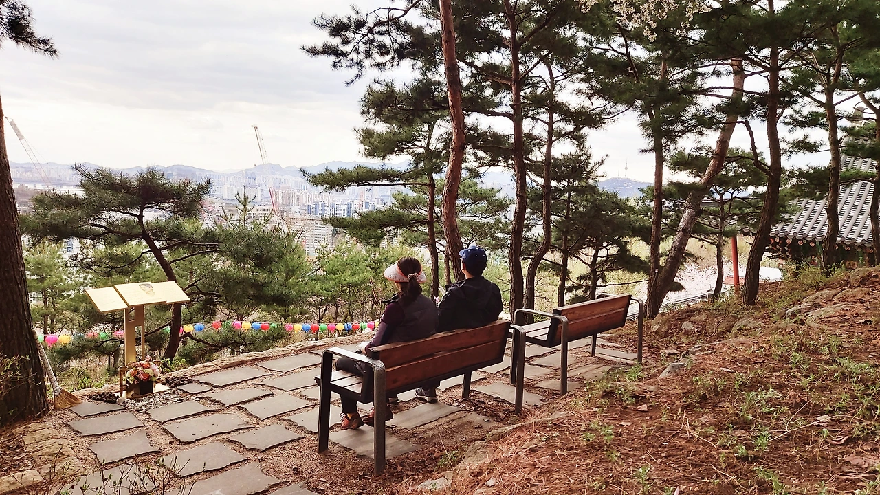 산책 중에 벤치를 만나면 잠시 앉아본다. 힘이들어 쉬어가는 목적보다는 경치를 구경하고 싶어서다. 그 중 달마사 뒷편의 벤치는 위치도 멋스러운 데다가 앞이 탁트인 전망이라 커피까지 꺼내 들고 한동안 앉아있게 된다.