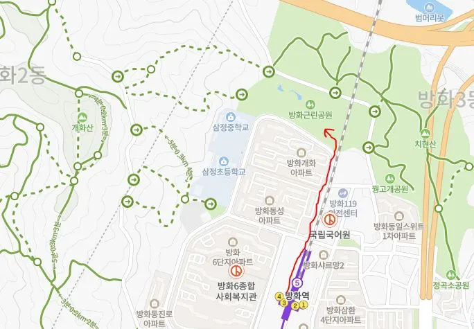 지하철 5호선의 마지막역인 방화역에서는 김포공항의 뒷산인 개화산을 산책할 수 있다. 개화산은 둘레길도 12km 정도로 동네 뒷산에 비해서는 조금 큰 편이다. 5호선에는 방화역의 한 정거장 전인 개화산역이 있어 이 곳을 이용해도 쉽게 개화산으로 들어갈 수 있지만, 이왕이면 방화근린공원까지 함께 돌아보는 것이 더 좋을 듯 해서 나는 방화역을 주로 이용하고 있다.