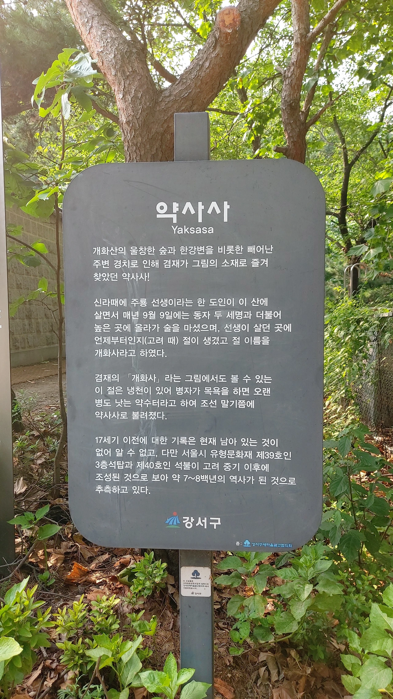 우리집에서 가기에는 거리가 좀 멀어 오가는 시간이 많이 걸려 자주 가는 편은 아니지만, 그럼에도 개화산 둘레길과 방화공원, 그리고 그 옆에 이어져 있는 치현산까지 여러 차례 돌아보았을 정도로 시설이 좋고 풍경이 좋다. 산길을 걷다 보면 중간에 100년이 된 미타사와 600년이 된 약사사, 2개의 오래된 절을 들러볼 수 있다.