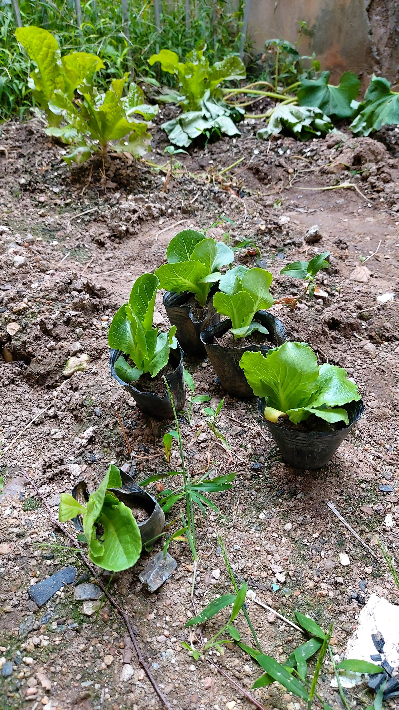 또 한가지 추억은 일자산이 끝나고 명일근린공원으로 건너기 위해 도로로 나오니 길가에 비닐하우스 화원이 줄지어 있었다. 늦은 여름철인데도 길가에 내놓은 꽃모종들 사이로 적상추 모종 작은 비닐컵에 담겨 나와 있었다. 연립주택인 우리집 앞에 있는 좁은 화단에 심어보고 싶어서 1개 2백원씩 해서 5개씩 사들고 왔다. 그렇게 화단 구석에 심어 놓은 것이 자리를 잡는 것을 보고, 2주 정도 후에 또 산책길에 화원을 만난 김에 이번에는 로메인을 5개 사들고 오게 됐다. 들고 올 때는 몰랐는데, 2주 먼저 심어 놓은 적상추 옆에 두니 너무 작은 것이 언제 자라나 싶었다.