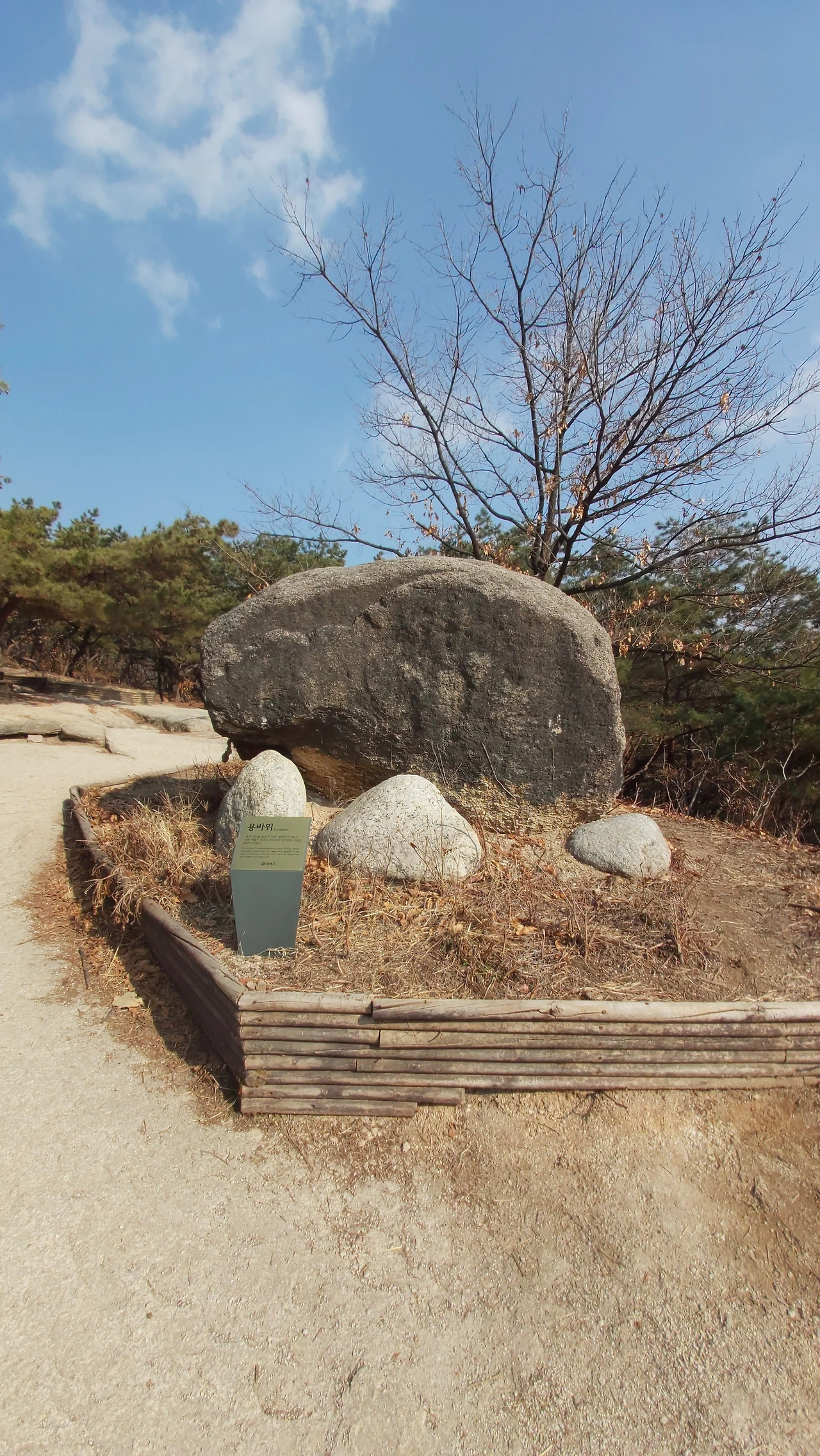 한 바퀴를 다 돌아도 눈에 띄게 기억할 만한 장소가 없었다. 용머리 모양을 하고 있는 '용바위'가 하나 있는 정도. 하지만 숲 속에는 구석구석에 눈에 잘 띄지는 않지만 내가 좋아하는 구불구불한 좁은 오솔길이 숨어 있다. 정말 다시 한번 생각해도 아담하니 주민들이 편하게 이용할만한 산이라는 생각이 든다. 지금은 겨울이라 화려함이 부족했지만, 다시 봄이 오고 가을이 되면 봉화산에도 볼거리가 부족하지 않을 것이다.