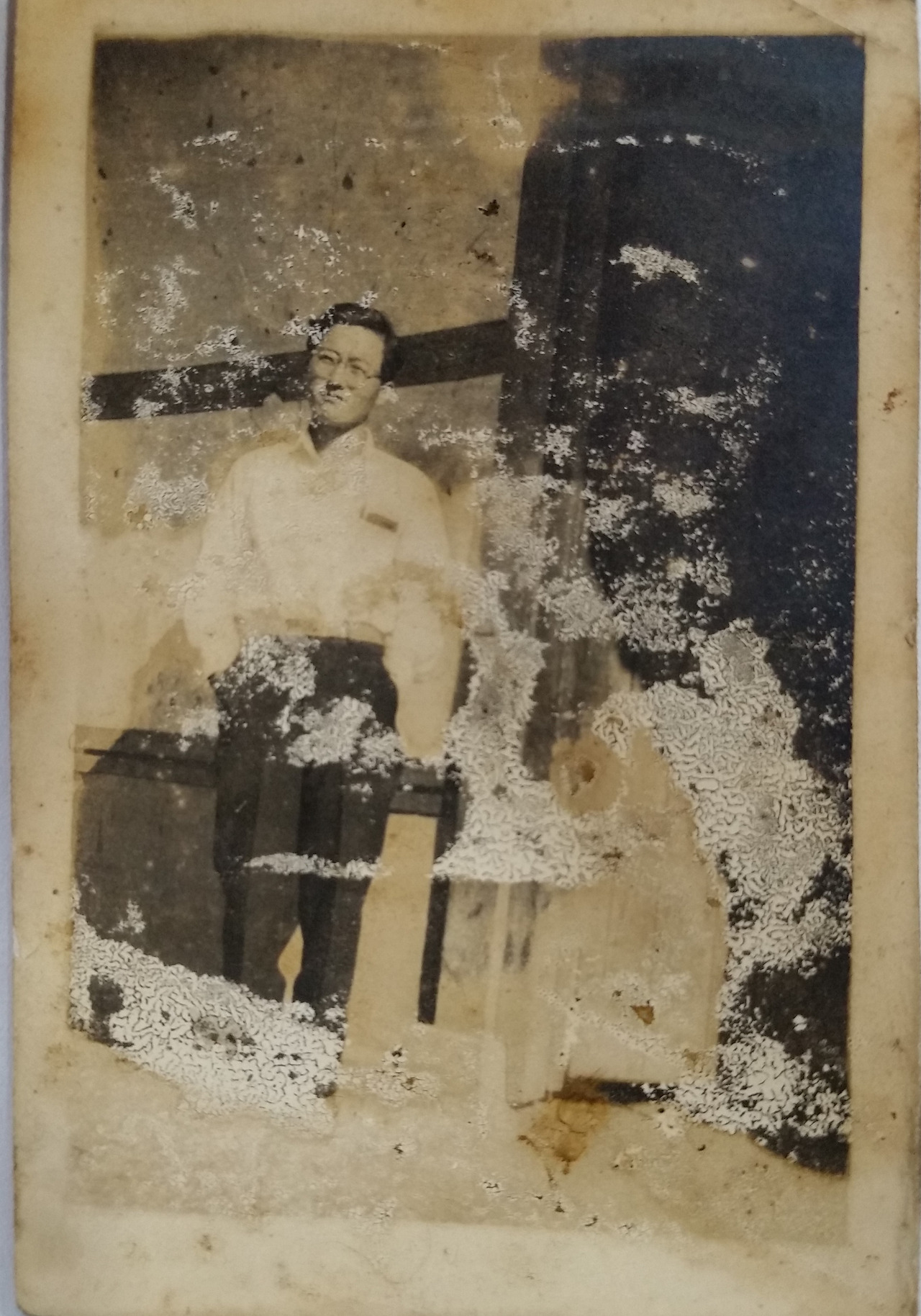 사진 속 모습이 사회에 막 발을 디딘 사회 초년생처럼 보이는 걸로 봐서 31세에 작성하신 일기 속 내용이 작성된 그 시기와 비슷한 시기가 아닌가 싶다. 우측 사진은 가운데가 아버님.