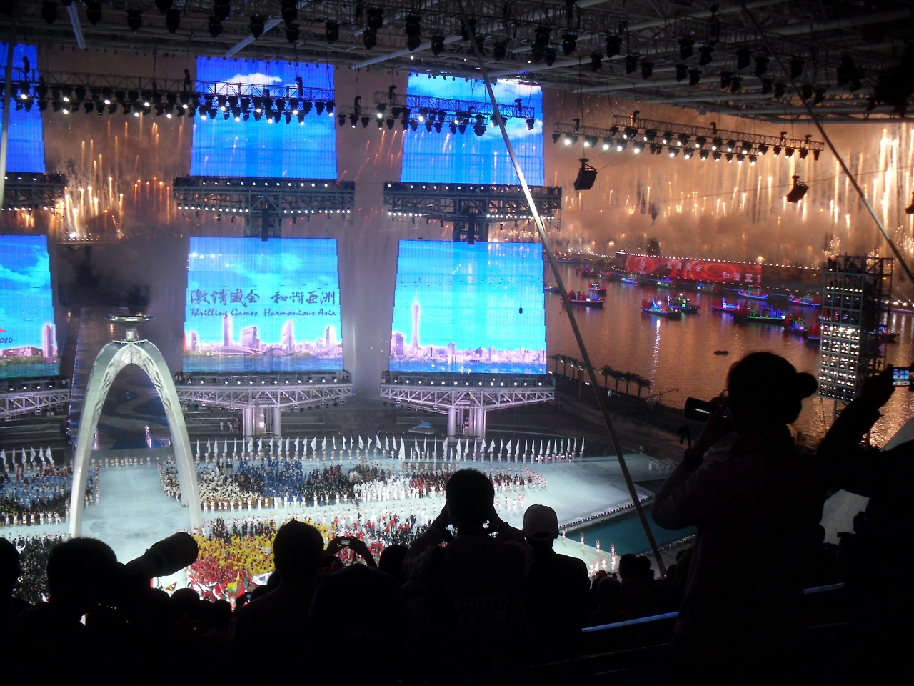 사진) 2010. 11월 개최된 광저우 아시안게임 개막식 모습. 사진 속 배들이 떠 있는 강이 광저우의 주강(珠江)이다.