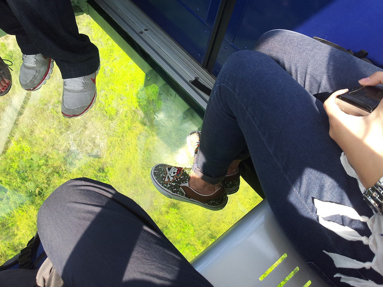 사진) 그녀가 홍콩 왔을 때 옹핑 360 (Ngong Ping)라는 케이블 카를 타고 찍은 사진. 길이가 무려 5.7km에 달하는 케이블 카인데, 사진에서 보듯 바닥이 투명한 유리로 되어 있어 아래를 내려다보면 바닥이 없는 것처럼 느껴져 섬찟한 느낌이 들기도 했다.