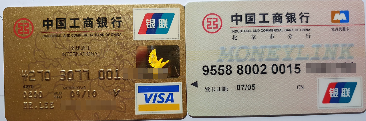 사진) 베이징에서 발급받은 신용카드와 현금카드. 이 두 개 카드를 사용하며 열심히 중국전역을 돌아다니던 그 시절이 벌써 14년 전이다.