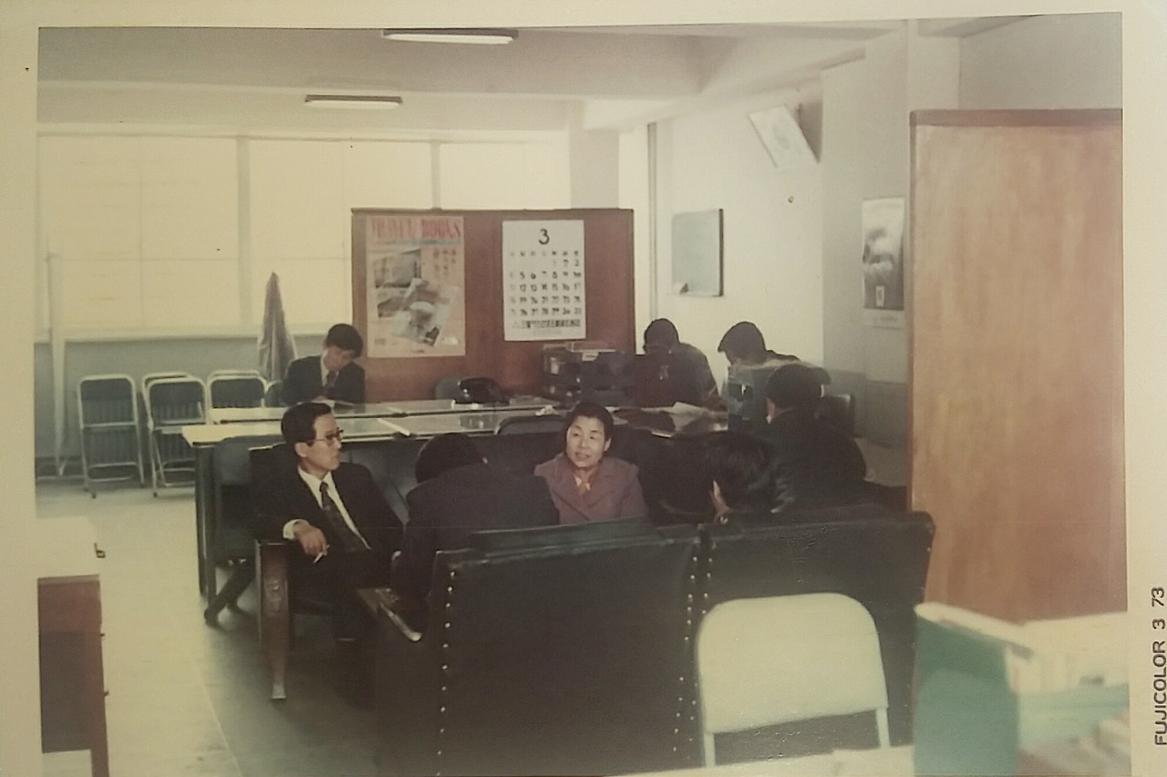 73년이라는 기록으로 보면 아버님께서 48세이실 때 찍은 사진. PC 한 대도 없는 70년대 예전 사무실 공간을 보니 좀 생소하다.
