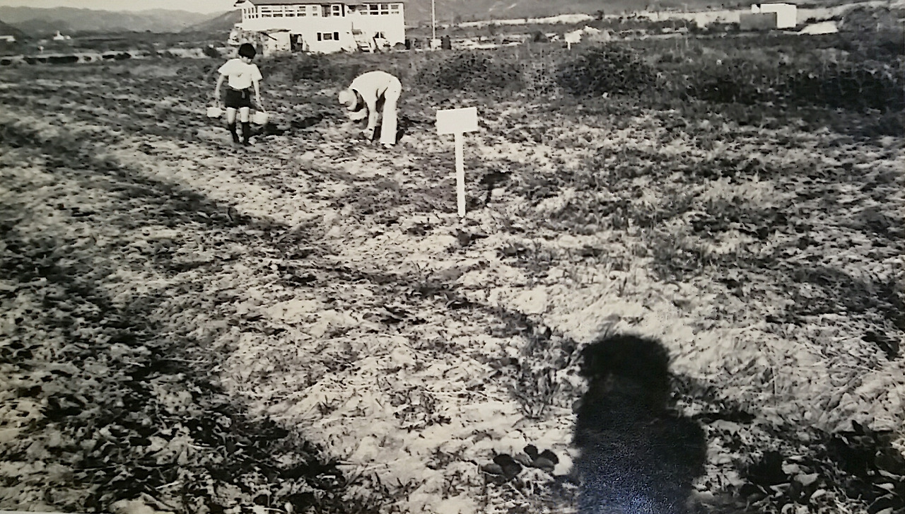직장 생활을 마치신 이후에는 경기도 용인에서 주말농장을 하셨다. 그 주말농장 모습이다. 오른쪽 사진에 보이는 건축 중인 둥그런 건물은 동물원이었고 여기에 원숭이도 있었던 것이 기억난다.