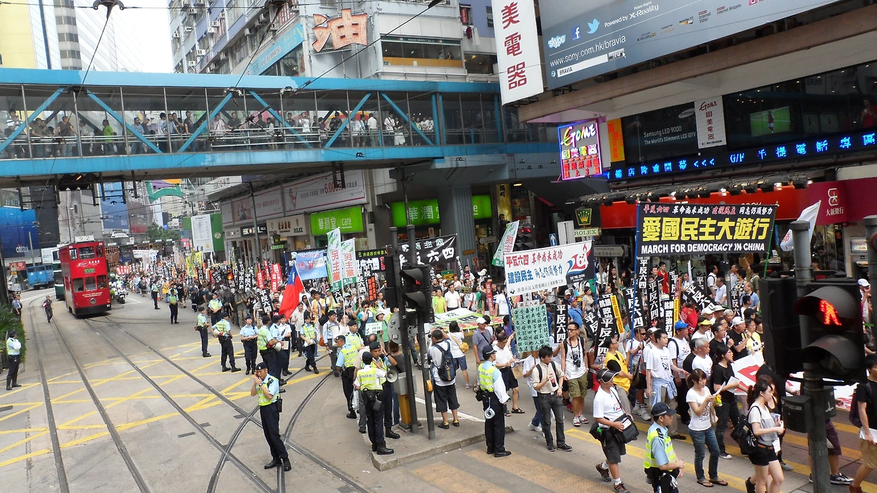 사진) 홍콩의 반중 시위대가 Causewaybay 인근 도로를 지나는 모습 (2011. 5월)