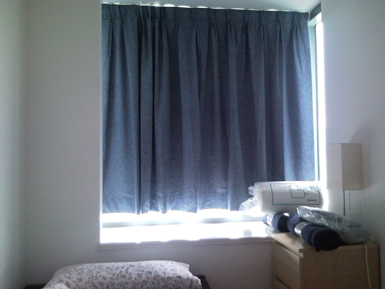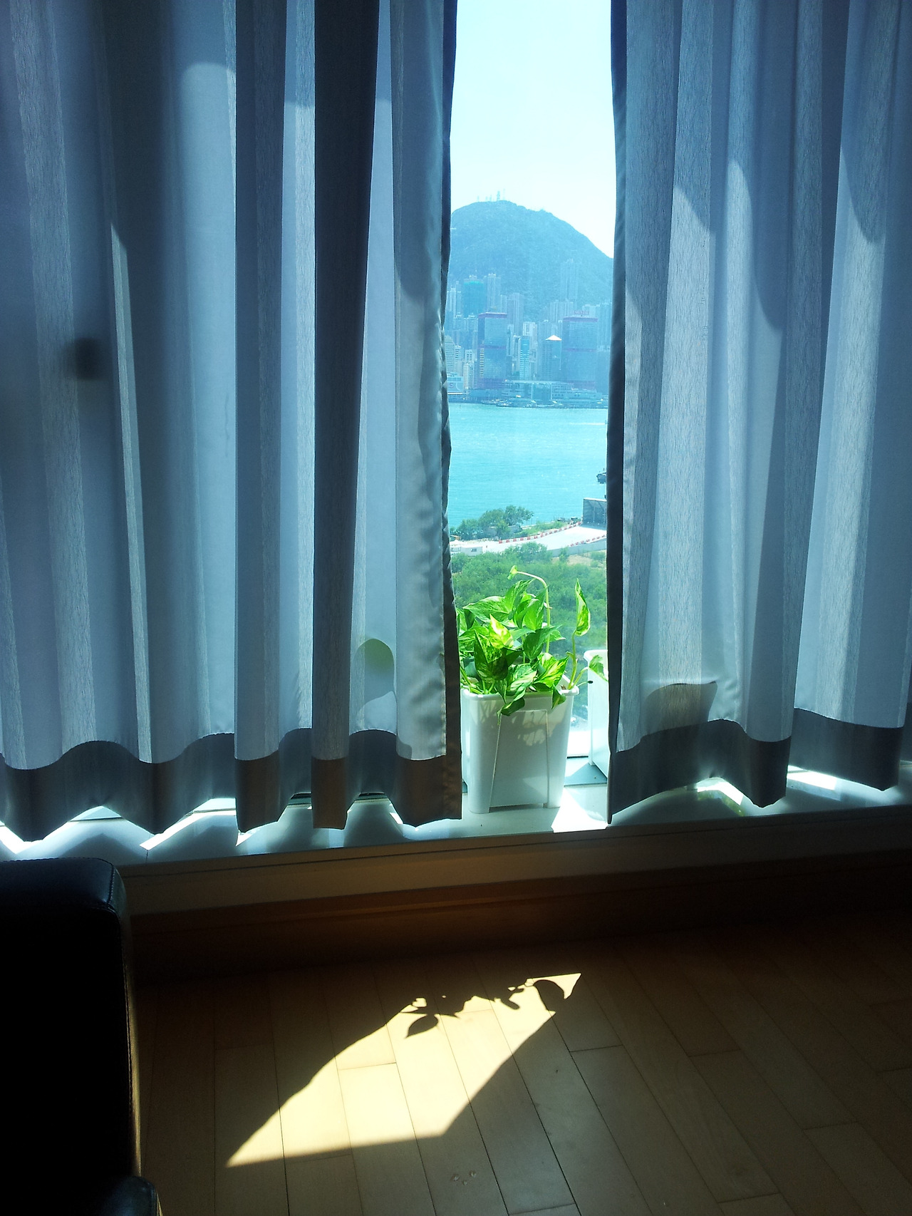모두가 남향이라 창으로 들어오는 아열대 지방 홍콩의 강한 햇빛이 너무나도 뜨거워서 거실과 2개의 방 창에 걸 커튼도 길이를 측정해서 사 왔다. 그런데 측정을 잘못했던 것인지 커튼을 창에 걸은 후에 보니 아래 사진에서 보는 것처럼 그 길이가 창문 사이즈보다 모두 짧았다. 하지만 또다시 사러 가기도 좀 귀찮고 해서 사진 상의 저 상태로 약 3년 반 동안 그대로 살았다. 오로지 혼자 사는 사람만이 감행할 수 있는 그런 '귀차니즘'의 결과였던 것 같다.