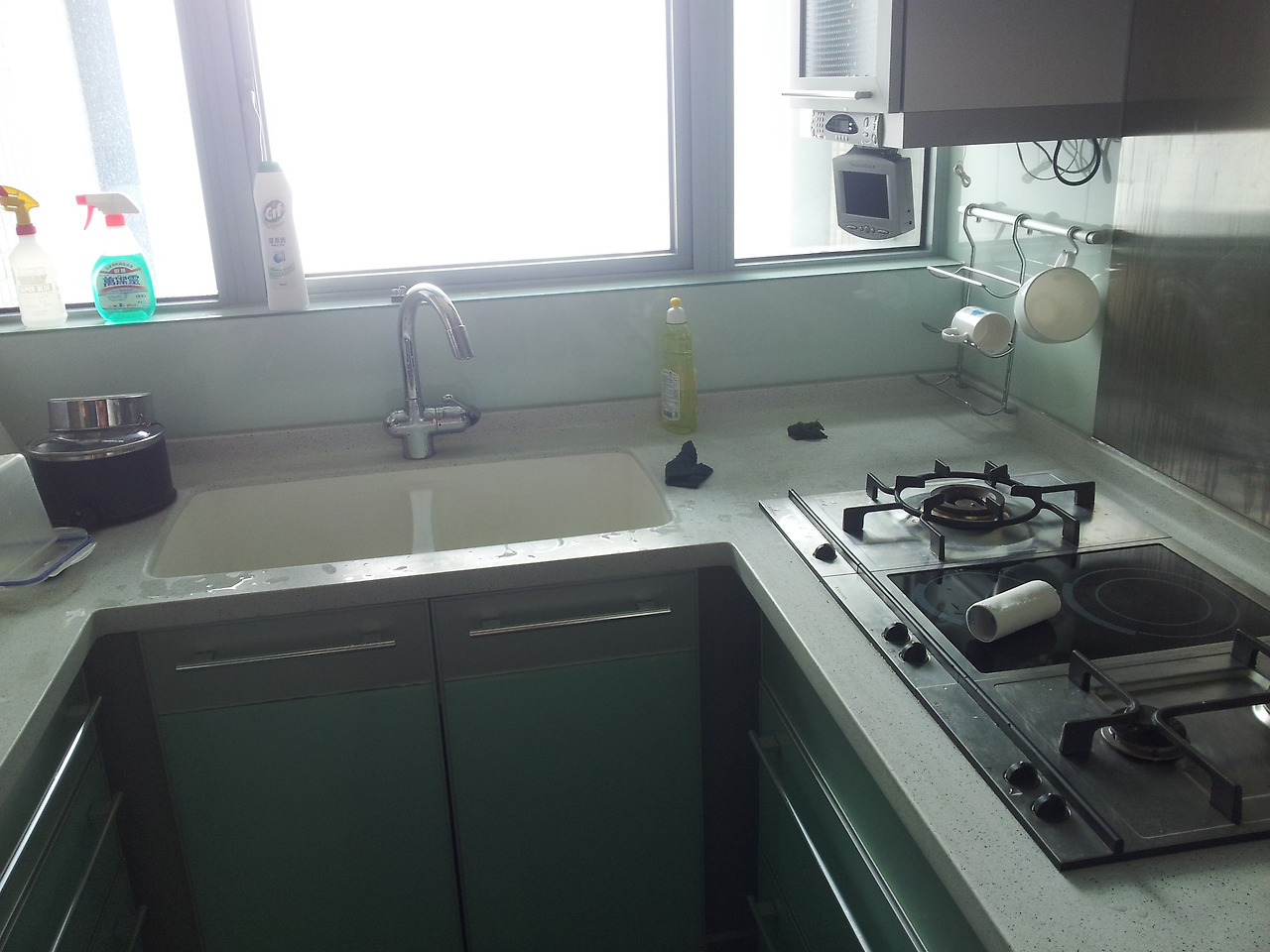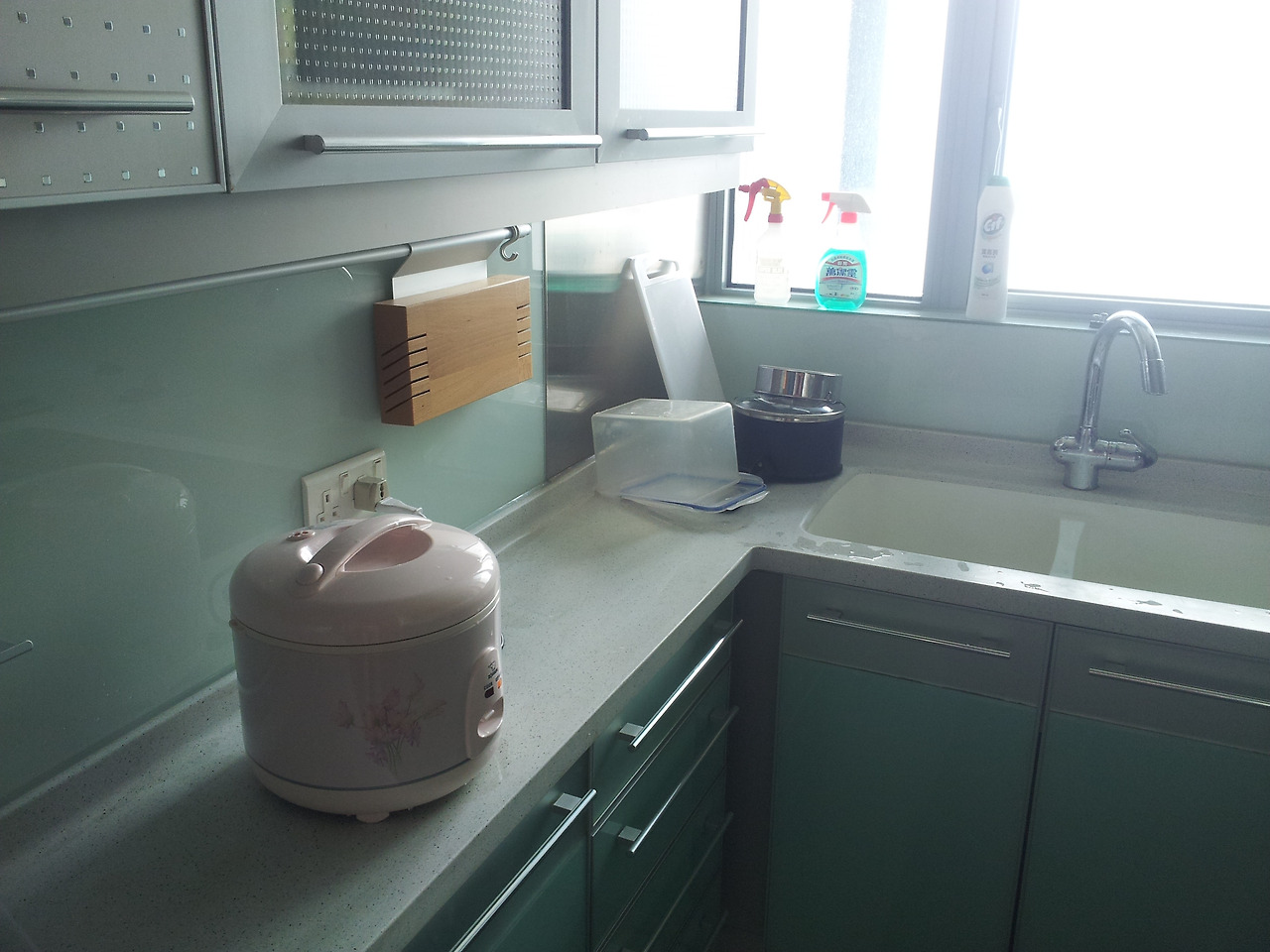 부엌에는 싱크대와 세탁기가 있었는데, 고급 아파트였고 또 실제 임대료도 그만큼 비싼 아파트였지만 내가 아파트 완공 후 처음으로 입주하는 경우였음에도 싱크대나 세탁기 모두고장이나있는 상태였다. 싱크대는 위에서 물을 부으면 그 아래 파이프로물이 바로줄줄 새서 부엌 바닥이 흥건해질 정도였다.