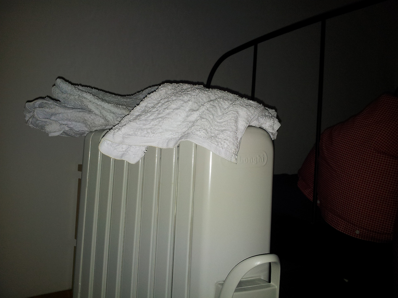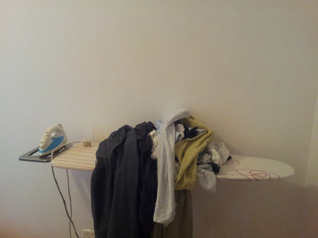 홍콩의 기온은 한겨울에도 10도 이하로는 내려가는 경우가 거의 없었다. 하지만 매우 습해서 그런지 겨울에는 꽤 춥게 느껴졌었다. 그래서 라디에이터를 하나 사서 사용을 했는데 빨래들은 밤새 이 라디에이터 위에 올려놓으면 다음날에는 모두 말라 있었다. 그런데 빨래들이 수세미처럼 딱딱해지는 경우도 있어 그럴 때는 사진에 보이는저 다리미로 펴기도 했었다.아래 사진을 보면 좀 지저분해 보이는모습이지만 독신자들 대부분은 이렇게 살고 있는 것 아닐지 모르겠다.