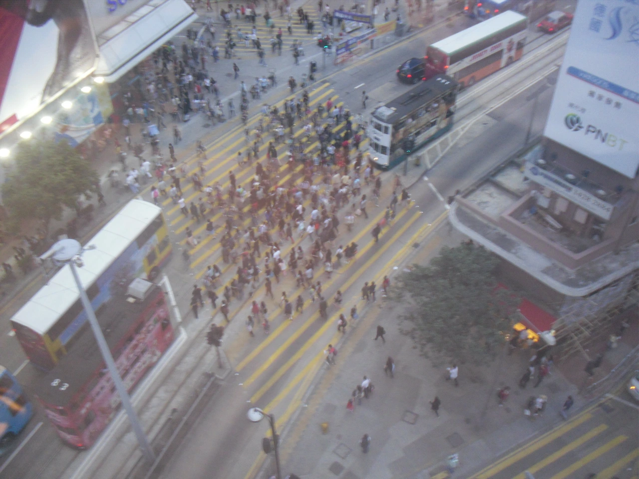 홍콩에서 가장 번잡하고 인파가 많은 곳으로는 홍콩섬의 SOGO 백화점 앞이나, 구룡반도의 몽콕 거리 등을 꼽을 수 있는데, 이 식당에서 내려다보면 번잡한 SOGO 백화점 앞 거리를 그대로 내려다볼 수 있었다. 아래 사진이 그렇게 미가에서 내려다본 SOGO 앞 거리인데, 사진에 보기에도 인파가 적어 보이지 않지만 피크 타임에는 이보다 훨씬 더 많은 인파가 붐비곤 했었다.