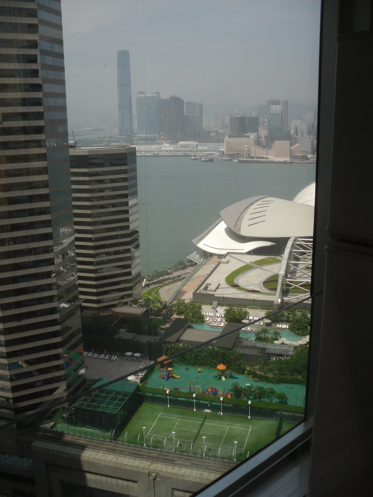 이 루프탑 바가 유명했던 이유는 음식보다는 바로 이곳에서 보이는 홍콩의 경치가 매우 환상적이었기 때문이다. 아래의 사진에서도 보이는 것처럼 이곳에서는 홍콩 도심 한복판의 화려한 야경도 볼 수 있었고 다른 방향으로는 빅토리아만과 그 바다 너머 구룡반도까지도 전혀 막힘없이 그대로 볼 수 있었다.