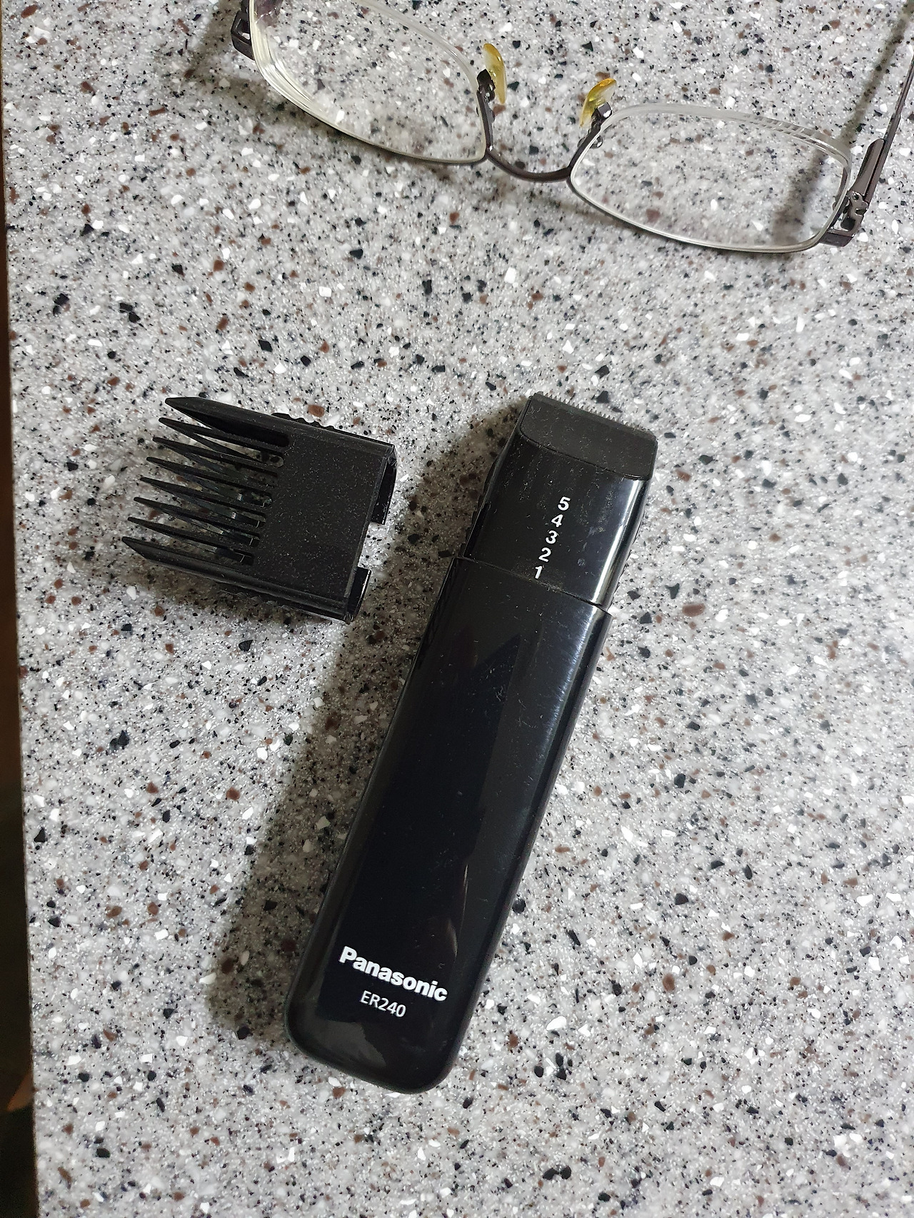 우측) 삭발할 때 사용한 소형 전기 이발기, 손바닥 보다도 작았다. 아까워서 버리지 못하고 있는데 그날 처음 사용한 이후 두 번 다시 사용한 적은 없다.