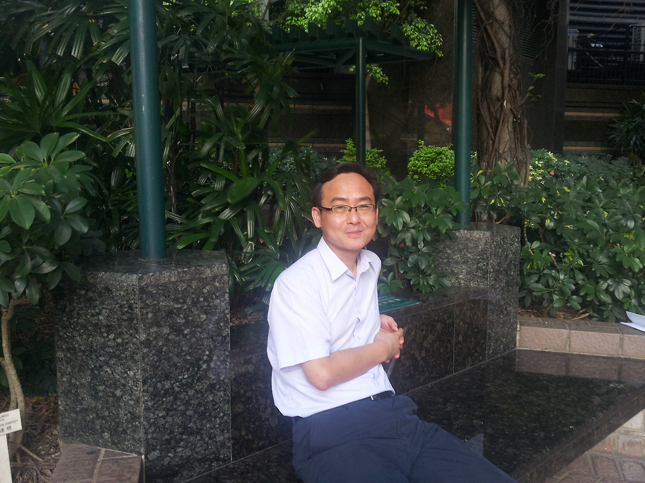 사진) 일하다 힘들면 사무실에서 내려와서 법인 건물 1층의 광장 한구석에 앉아 잠시 머리를 식히곤 하던 시절의 모습. 살 빼고 난 이후의 모습이다. (2012. 5월)